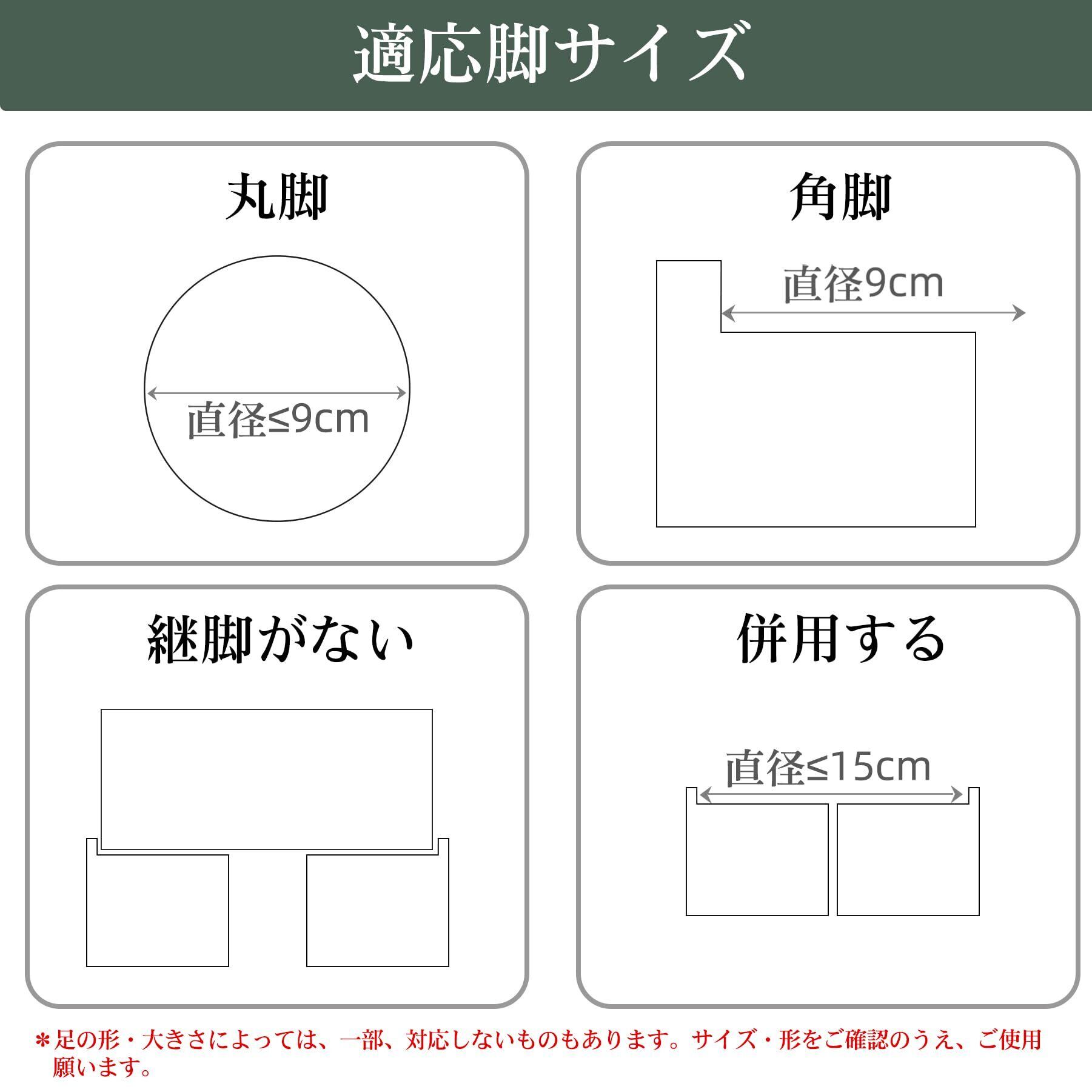 【注意事項】大型家具の脚が本品に納まる範囲かどうか、事前にご確認の上、お買い求めください。サイズ内でも、こたつの脚の形状により一部入らない場合があります。