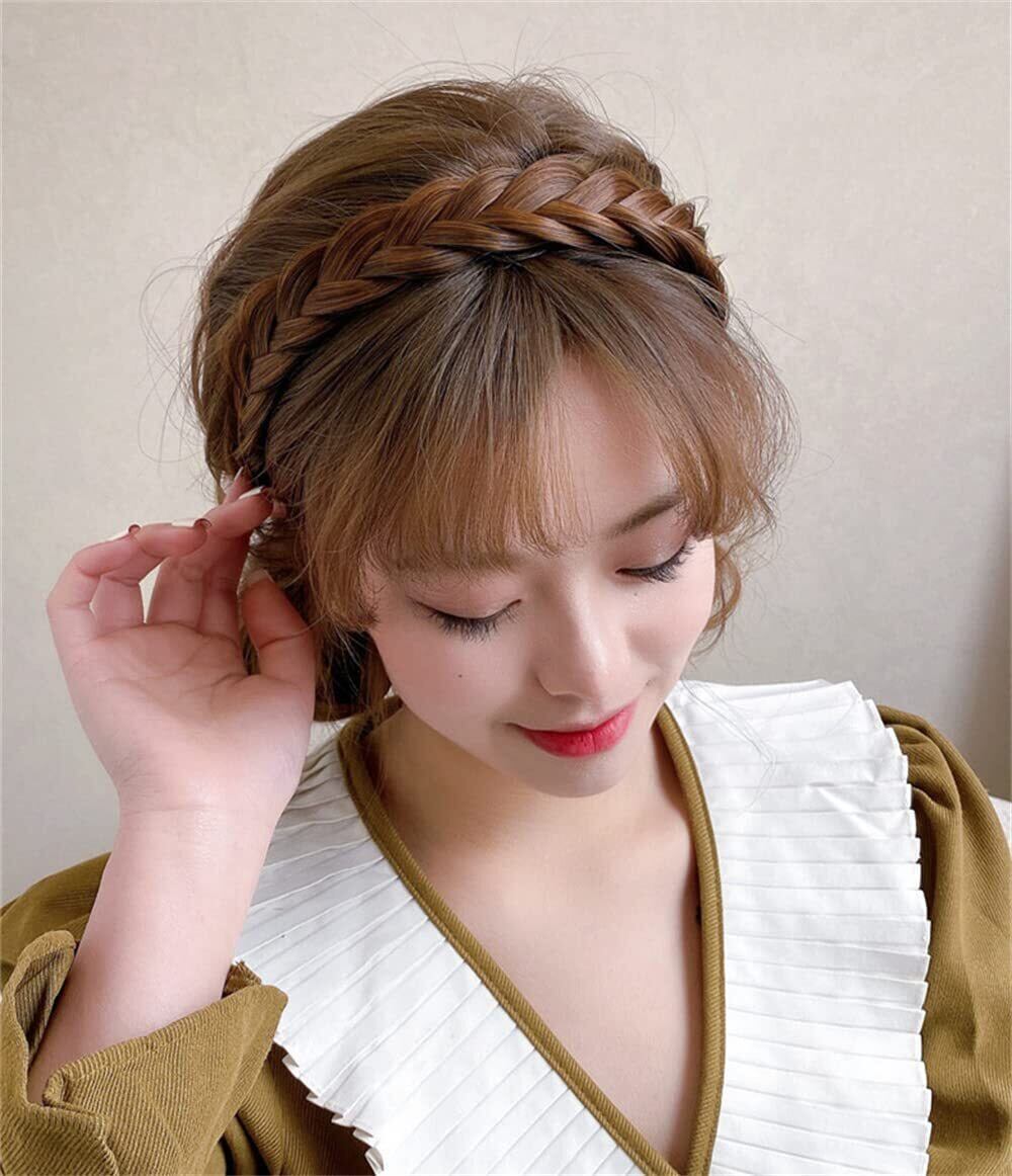 【人気商品】カチューシャ 三つ編み 前髪 髪留め ヘアバンド 髪飾り ヘアアクセサリー 滑り止め 痛くない かわいい (ダークブラウン)