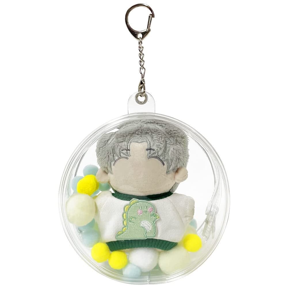 【新着商品】ケース バッグ 痛バ 防塵 ぬいポーチ お出かけ 人形入れ 全透明 10cmぬいぐるみ用 クリアポーチ 鞄に付ける 推し リング付(ラウンド)