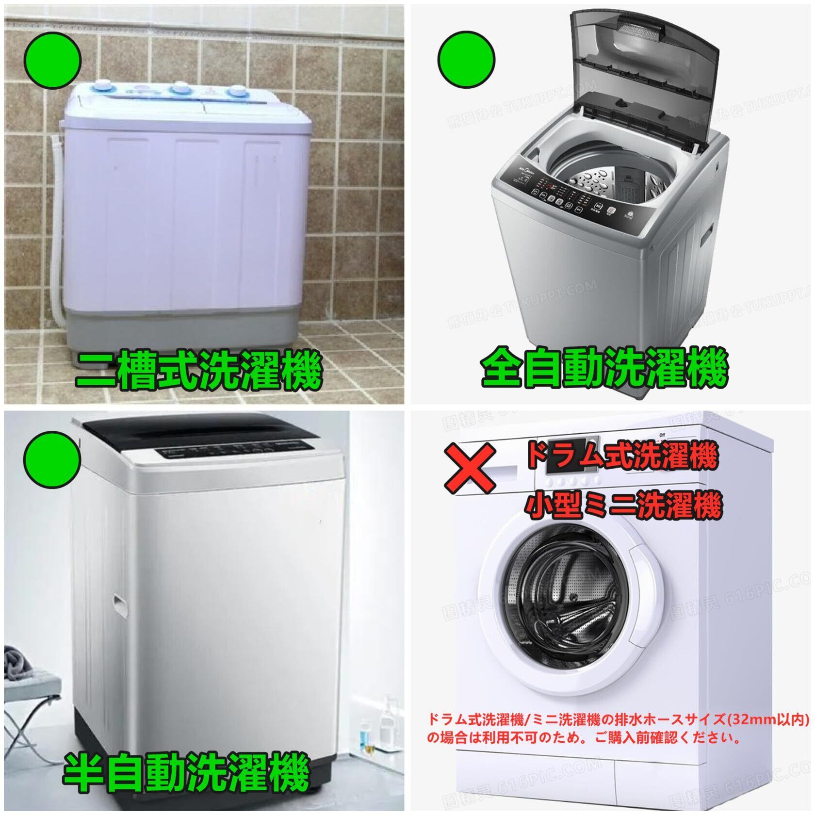 アフターサービス】注意点:ドラム式洗濯機/ミニ洗濯機には、排水ホース接続口直径32mm以内の場合は利用不可、こ購入前確認ください。万が一商品に品質が不具合など利用不可の場合は、お気軽に連絡して不良品交換対応できます。