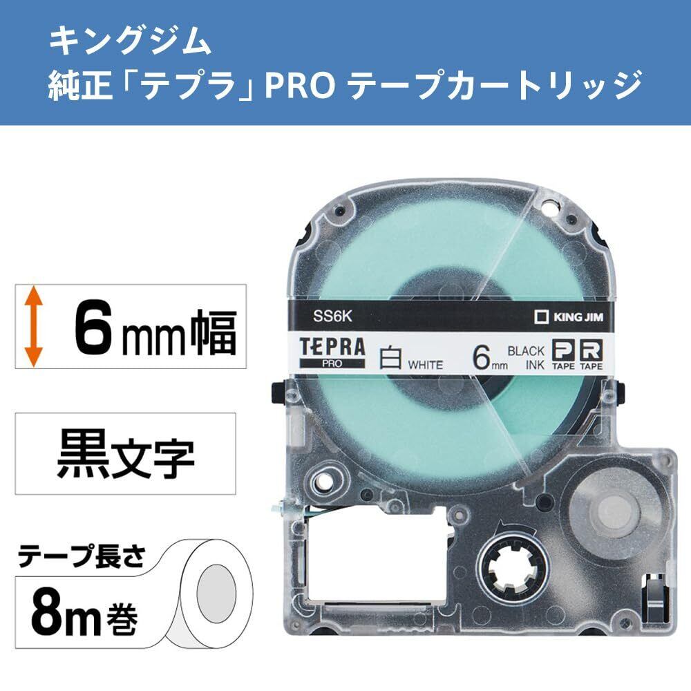 KING JIM Proテープカートリッジ 白ラベル 6mm SS6K