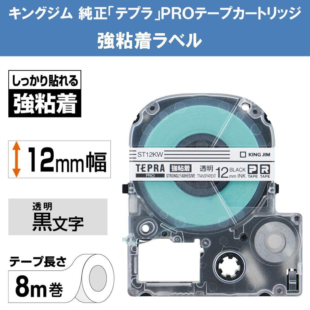 キングジム 【純正】 テプラPROテープカートリッジ 強粘着 12mm 透明ラベル/黒文字 長さ8m ST12KW