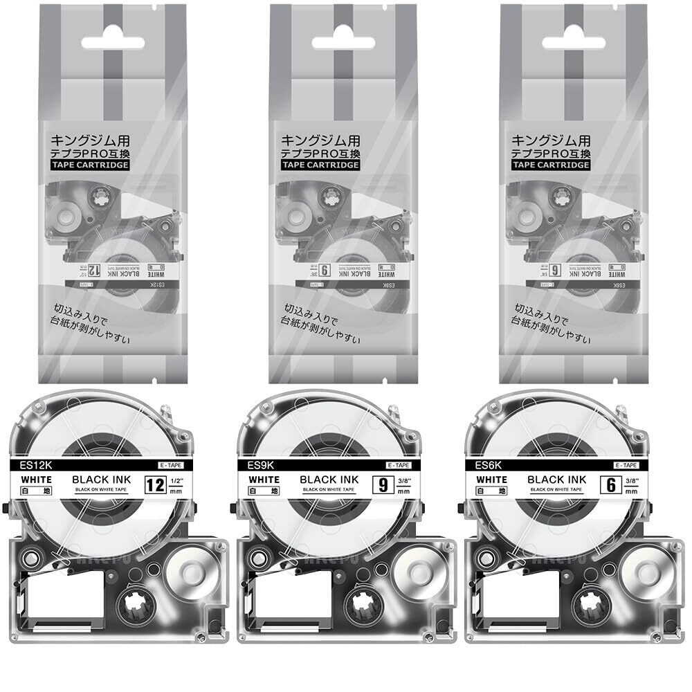 互換 テプラ テープ 互換 キングジム テプラPRO テープ セット テープカートリッジ (白地黑文字, 6/9/12mm)