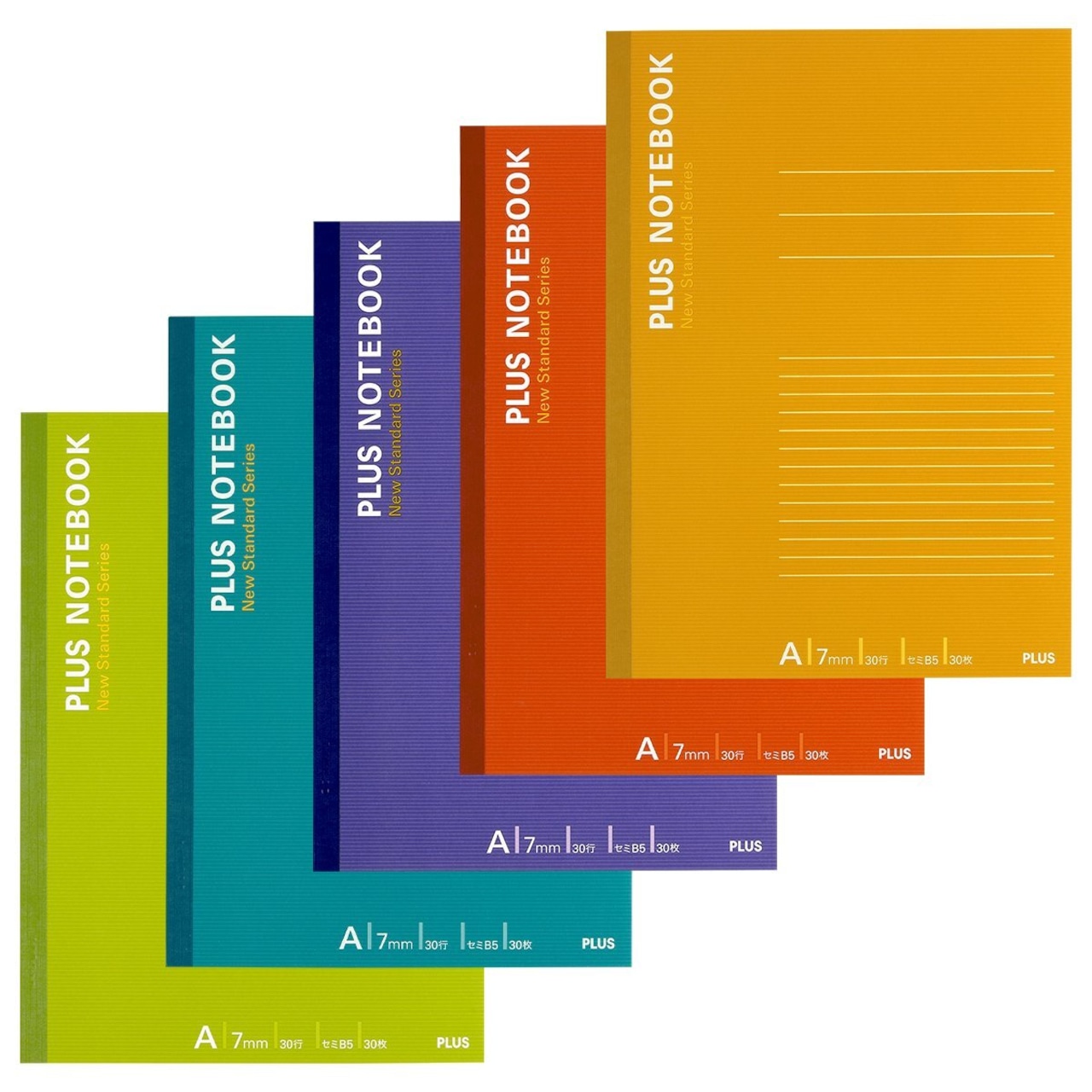 PLUS(プラス) ノート セミB5(6号)A罫30枚5冊入NO-003AS-5CP 5色色込 76-731