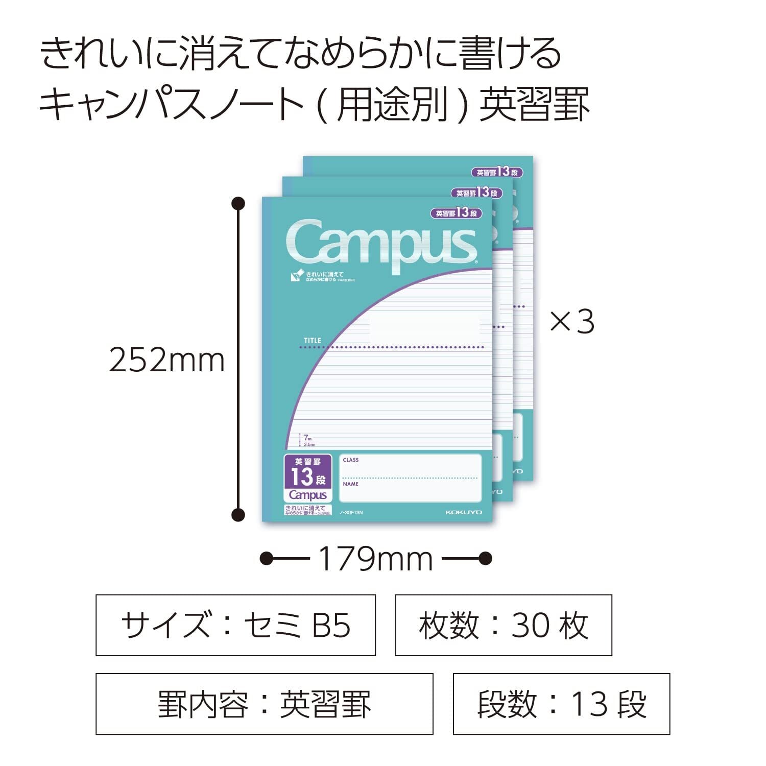 コクヨ(KOKUYO) 英語 ノート キャンパスノート 3冊パック 13段 B5 ノ-30F13NX3
