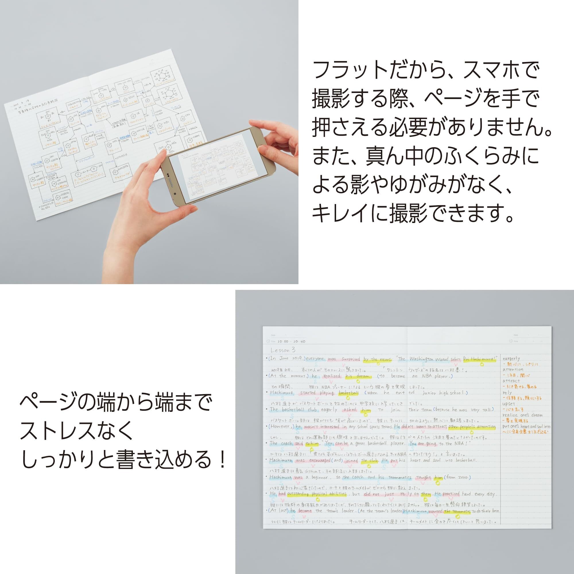 ・ページの端から端までストレスなく広々と書き込めます。