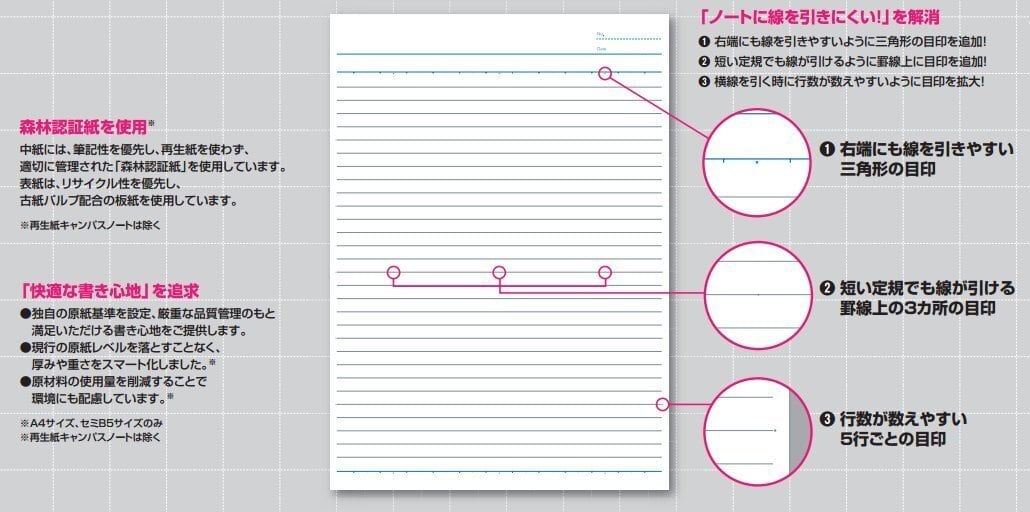 ●更に使いやすく、更に地球にやさしく進化したスマートなキャンパスノートです。