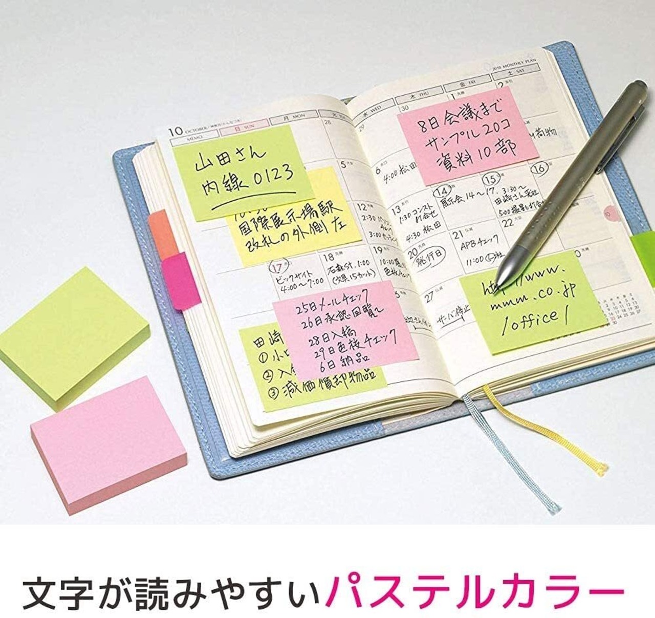 パステルカラーのラインナップは、お仕事のメモや家庭でのちょっとしたアイデアを書き留めるのにぴったりです。好きな色で分けて管理できるので、使い方も自由自在。オフィスや学校、家庭など、幅広いシーンで簡単に使いこなせます。
