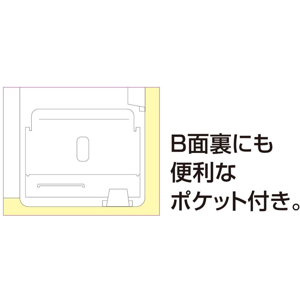 見開きタイプのポケット構造は、一度に多くの情報を確認するのに便利。キッチンでのレシピをキープするのにも最適で、外側の透明ポケットにはメモや必要な書類を入れられるため、常に整理整頓された状態を保てます。必要なときにすぐ手に取ることができ、効率的に活用できます。