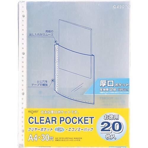 リヒトラブ クリヤーポケット 厚口タイプ A4 30穴 20枚入 G49070