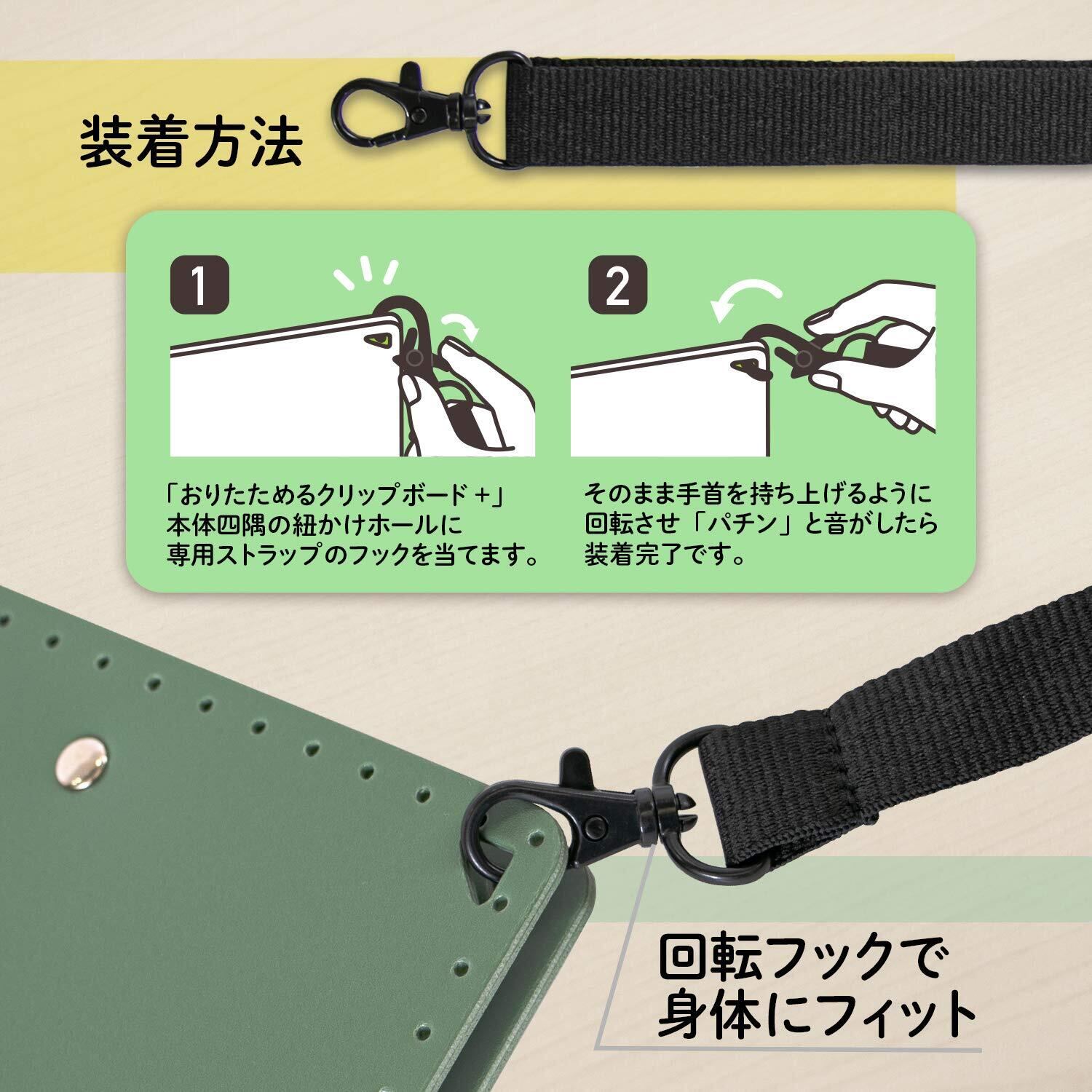 本製品はおりたためるクリップボード+ 本体四隅の紐かけホールに装着することで、より便利にご使用いただける専用ストラップです。