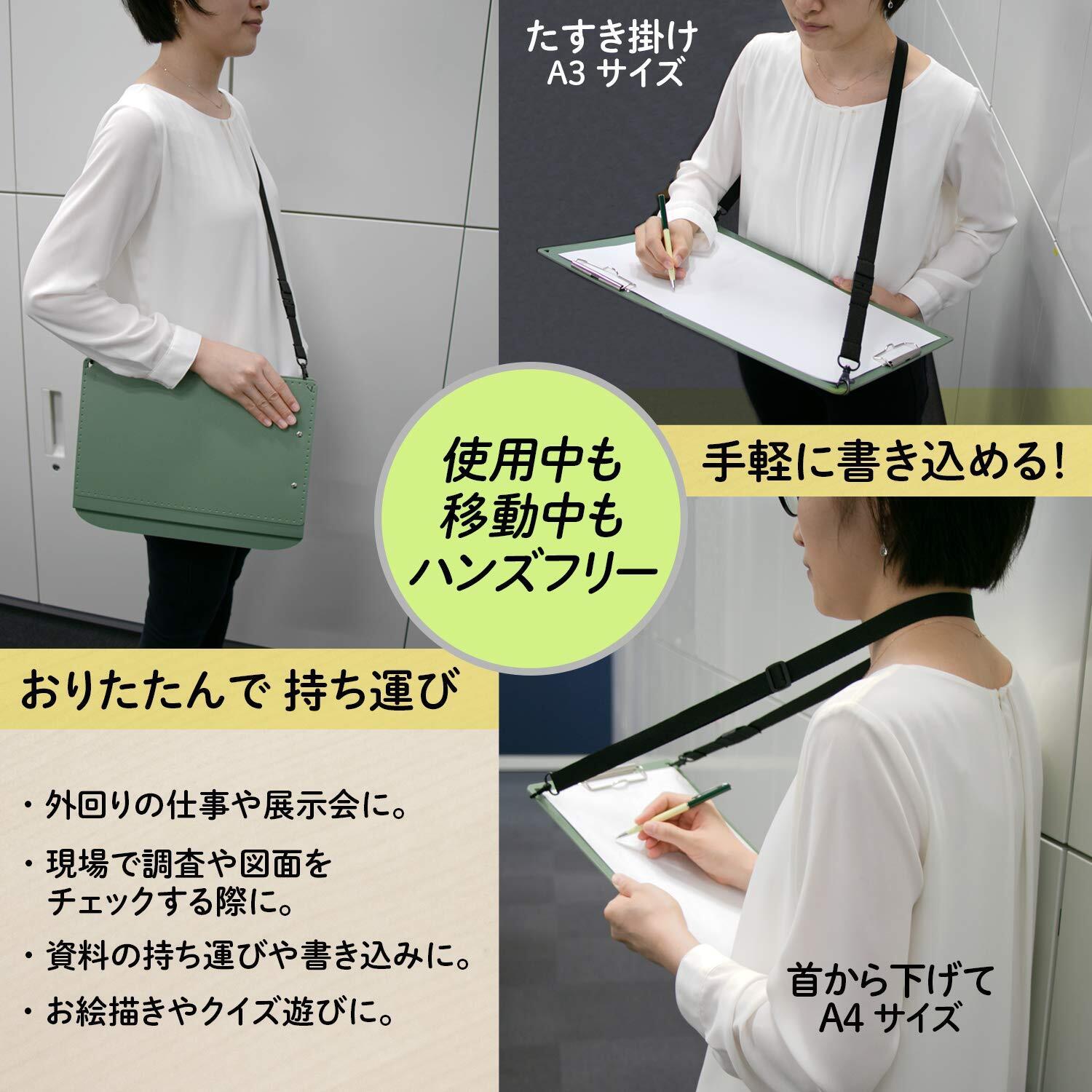 肩から下げて持ち運びができ、そのまま書き込みをすることができるので様々なシチュエーションに応じてより便利にご使用いただけます。