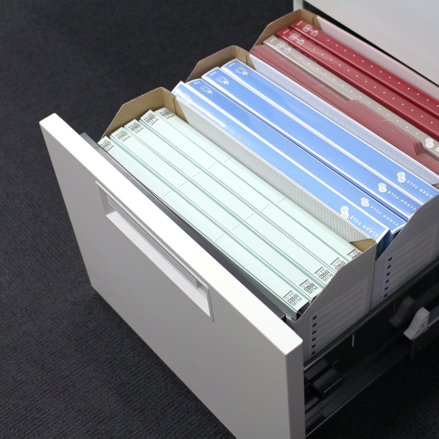 「プラス ファイルボックス エコノミー」は、A4横サイズに対応したシンプルでスタイリッシュなデザインのファイルボックスです。ブルーのカラーはどんな環境にもマッチし、オフィスや自宅での書類管理をサポートします!