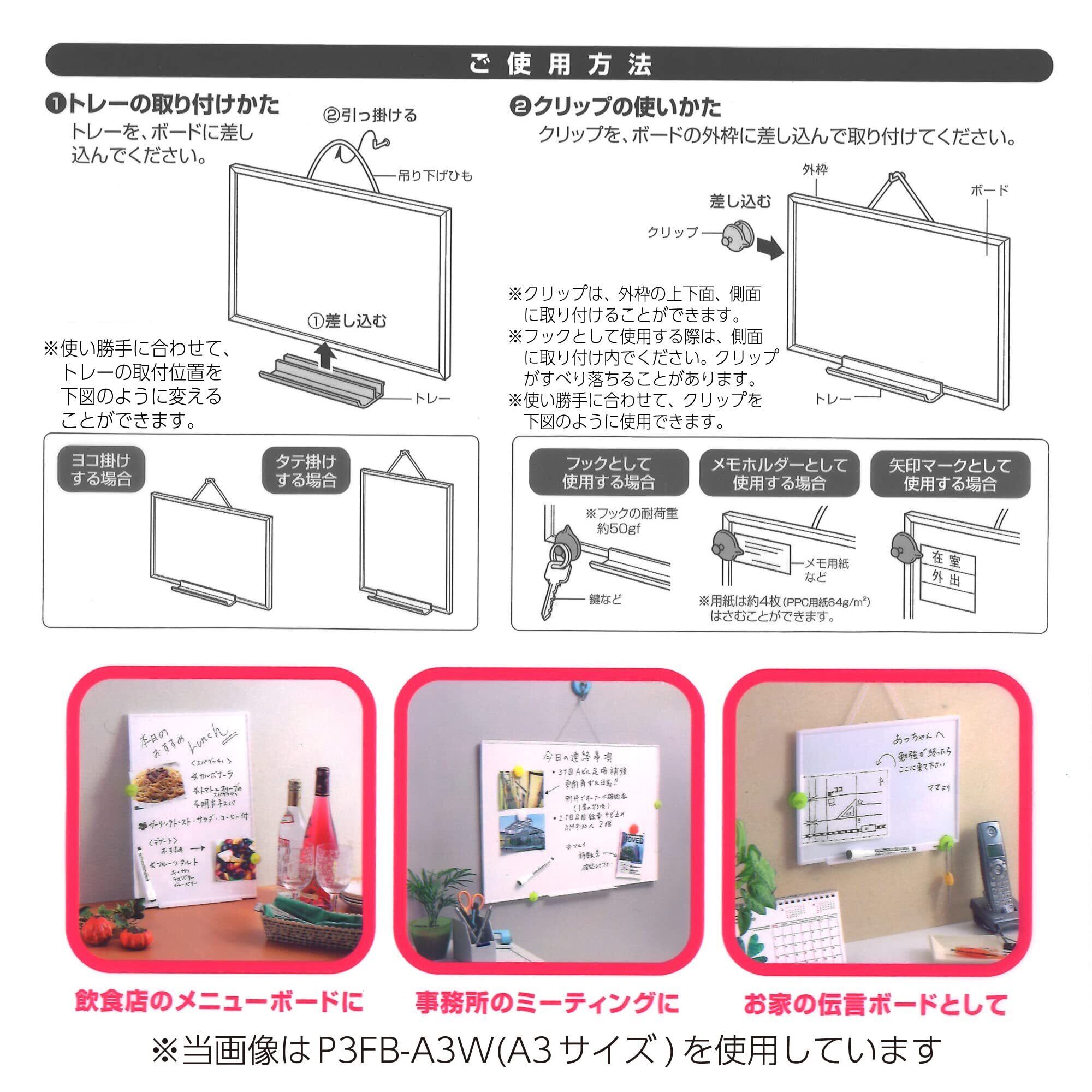 【付属品】 2WAYクリップ2個、イレーザー付きホワイトボード用マーカー(PM-B100D)1本、トレー1個