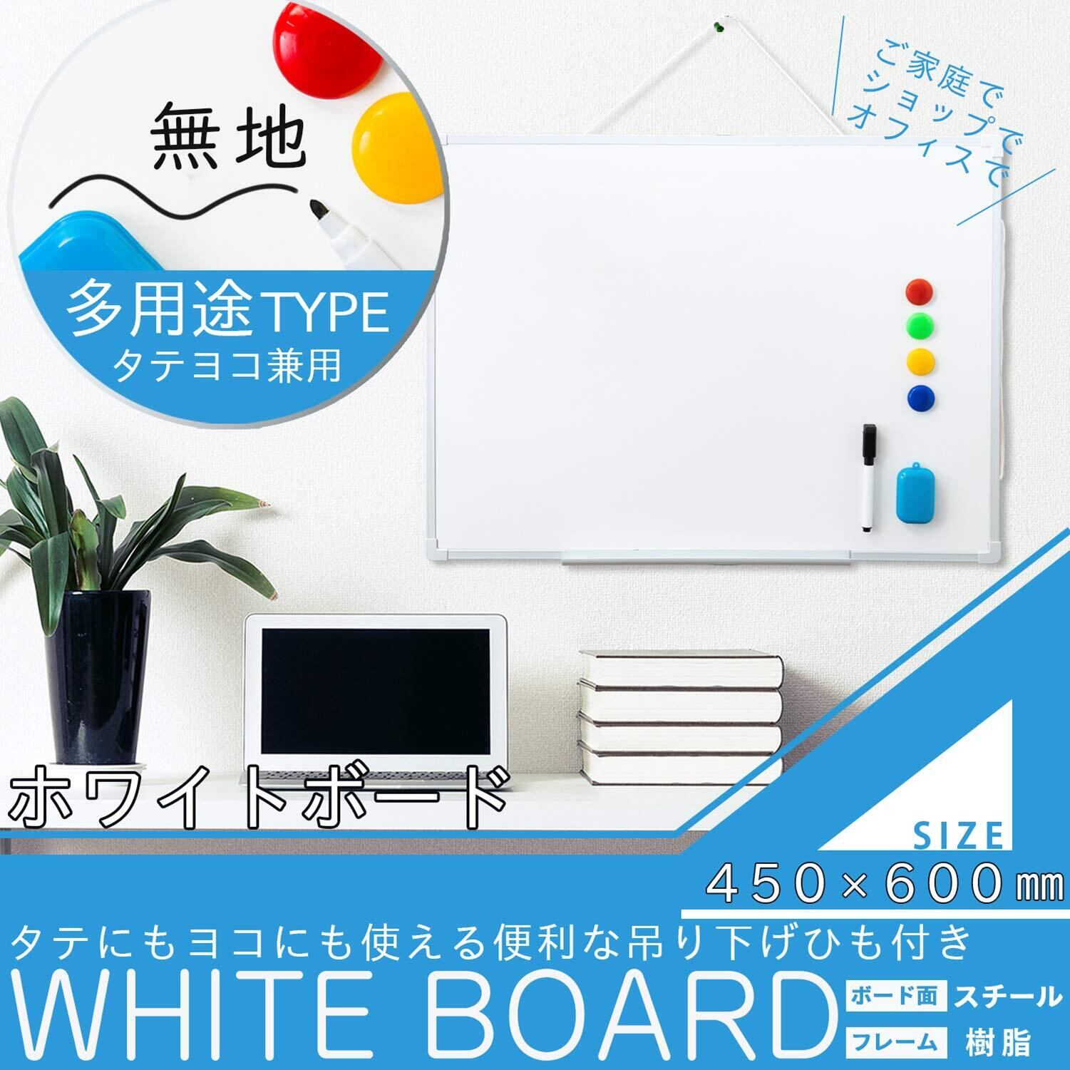 サンケーキコム ホワイトボード 樹脂枠 無地 600mm×450mm タテヨコ兼用 WB-6045