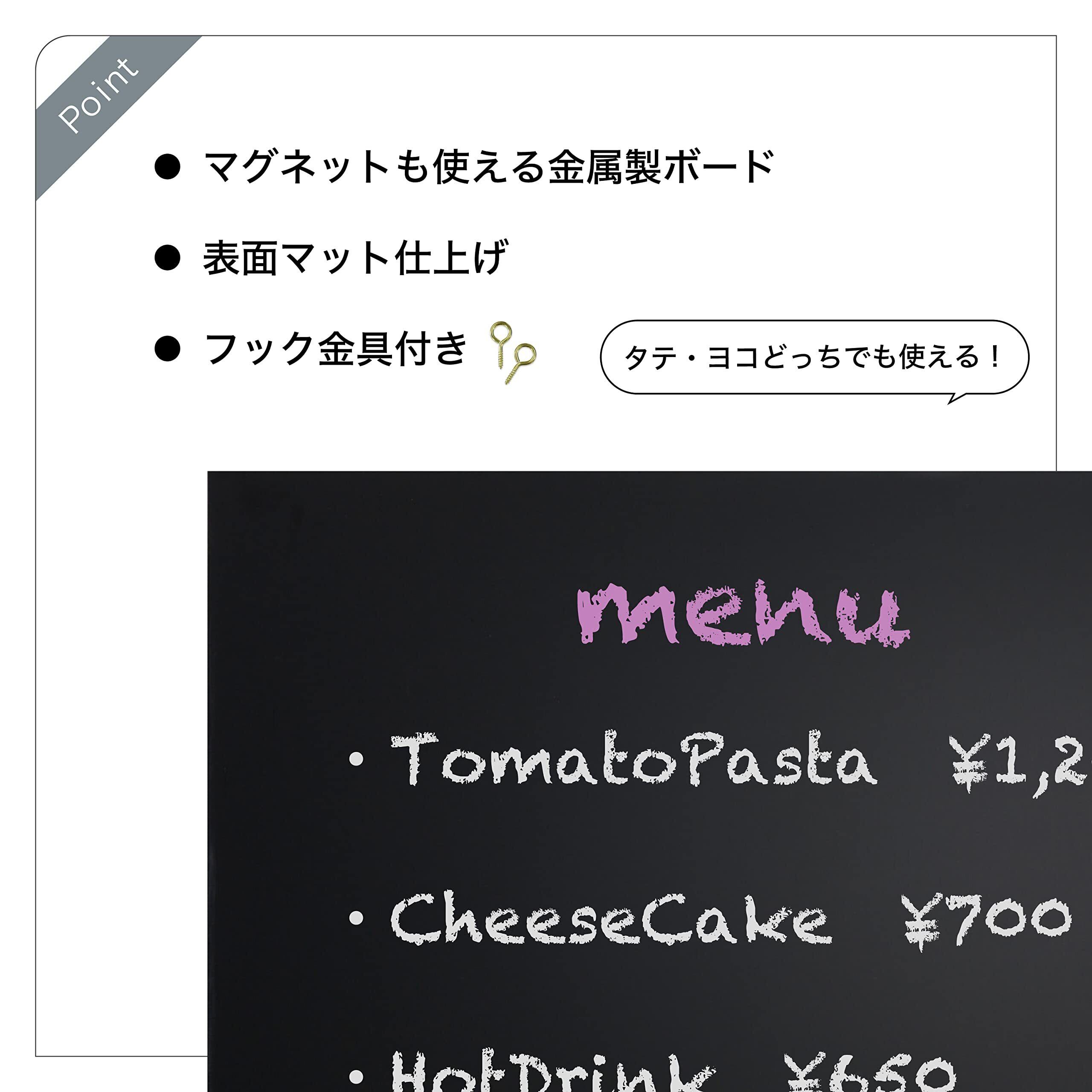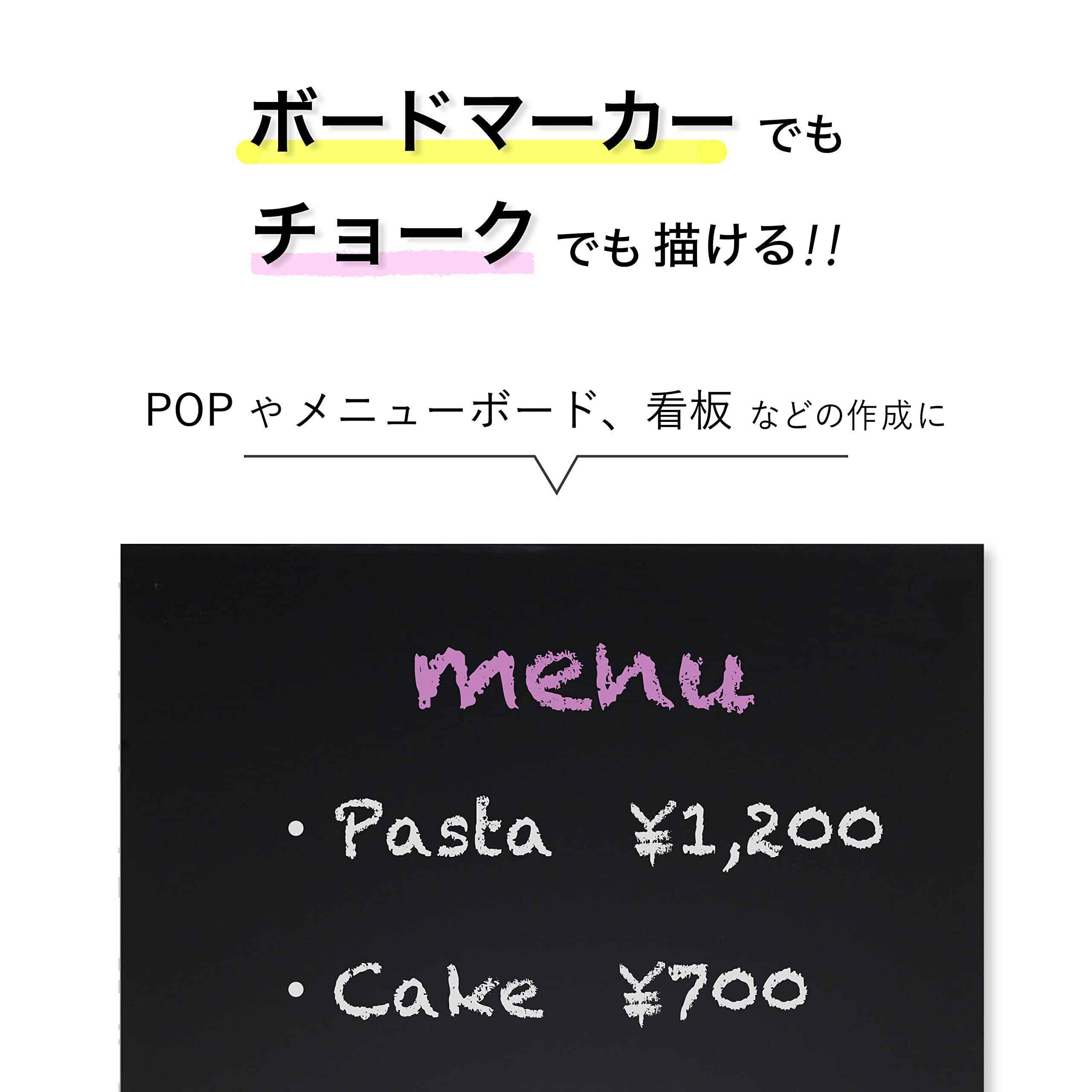 滑らかな黒板の表面は、チョークやマーカーでの書き込みが非常にスムーズです。また、書いた内容は容易に消去できるため、何度でも新しいメッセージやアイデアを書き足して、活用できる点が大きな魅力です。