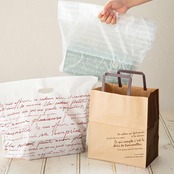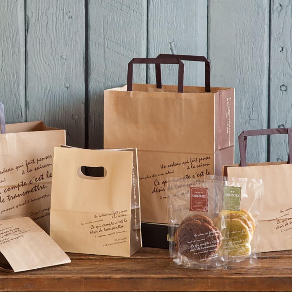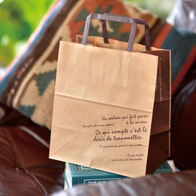 人気のBKFシリーズからペーパーバッグができました。クラフト素材でナチュラル感を出しつつ、落ち着いたブラウンの刷色で全体の雰囲気を引き締めています。