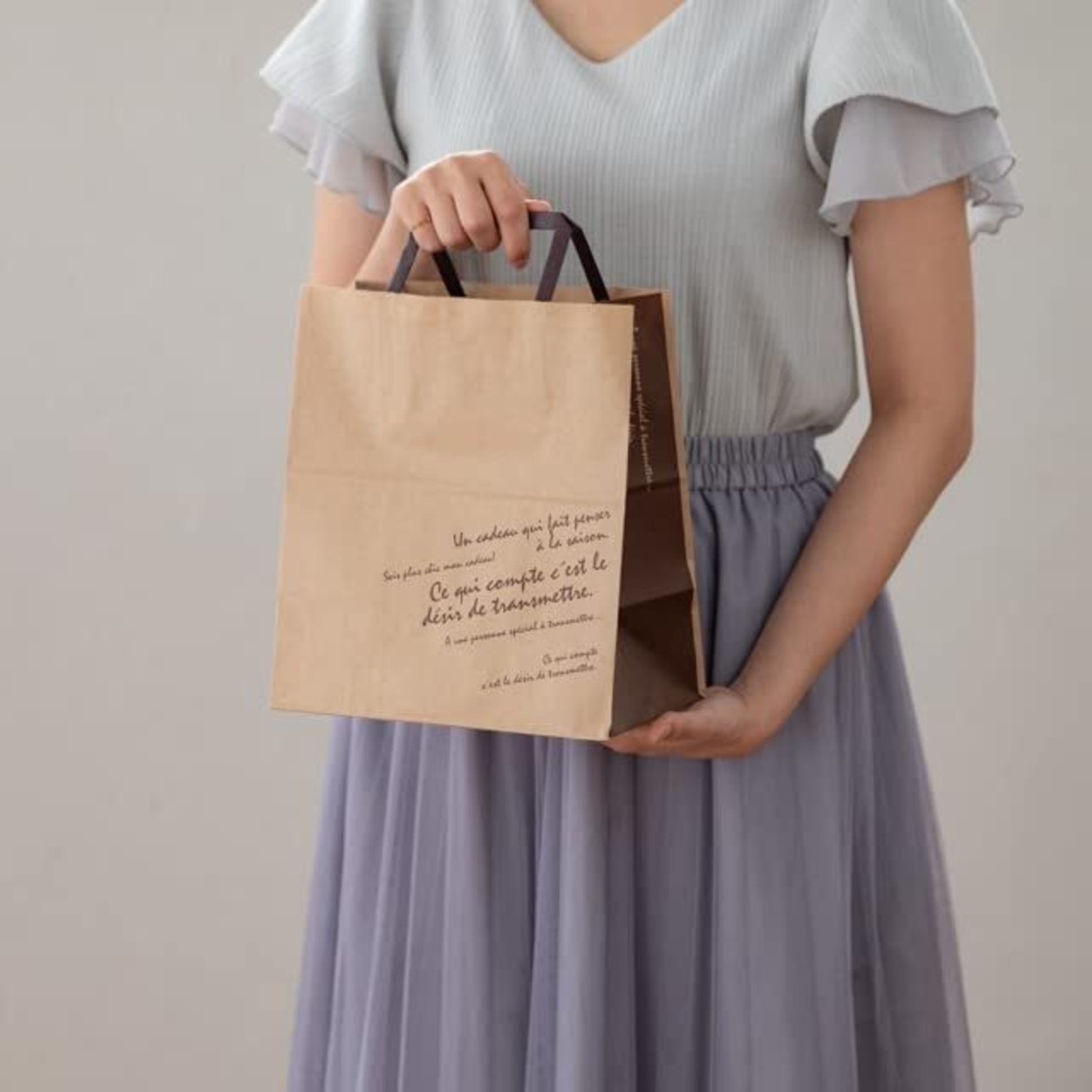 この紙袋は、環境に優しいクラフト紙を使用しており、丈夫でしっかりとした作りです。大切な商品をしっかりと守るだけでなく、持ち運びも快適に行えます。高品質な素材だからこそ、安心してご利用いただけます。
