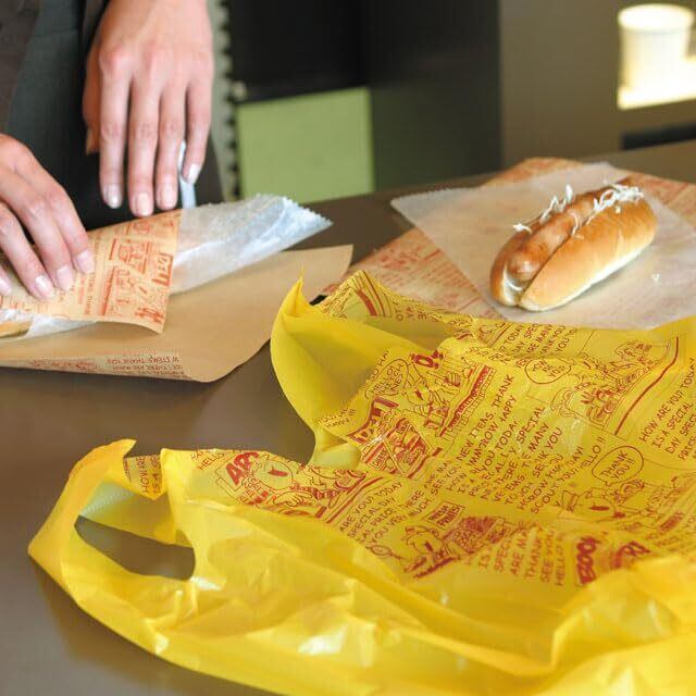 「ヘッズ 手提げ袋」は、アメリカンコミックスタイルの鮮やかなイエローデザインで、あなたの店舗を華やかに彩ります。100枚セットで、さまざまなシーンで大活躍間違いなしのアイテムです!