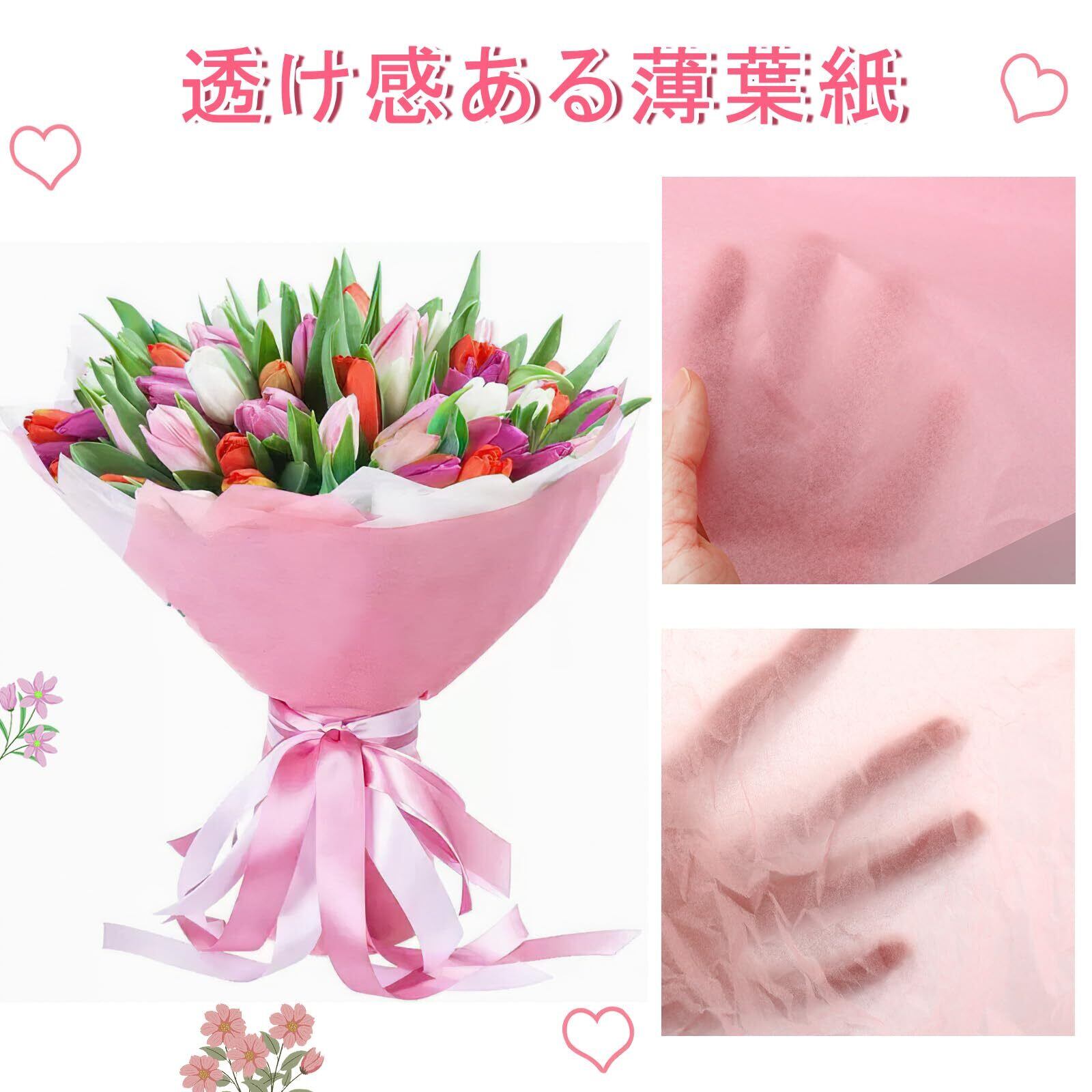 METBOU 薄葉紙 120枚 4色セット お花紙 ピンク フラワーぺーパー おはながみ 母の日 ラッピングペーパー 薄紙 包装紙 ペーパー フラワー 紙 誕生日 バレンタイン 結婚式 飾り 手芸用品 ピンク 35cm×50cm