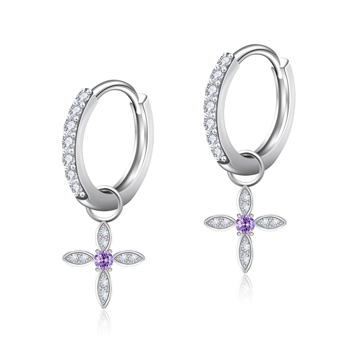 【在庫処分】ピアス レディース 誕生石 フープ ピアス 揺れる 2Way 花 ピアス 女性 シルバー 金属アレルギー対応 ピアス クロス 大人 アクセサリー プレゼント 誕生日 結婚記念日 カジュアル フォーマル | allstore3