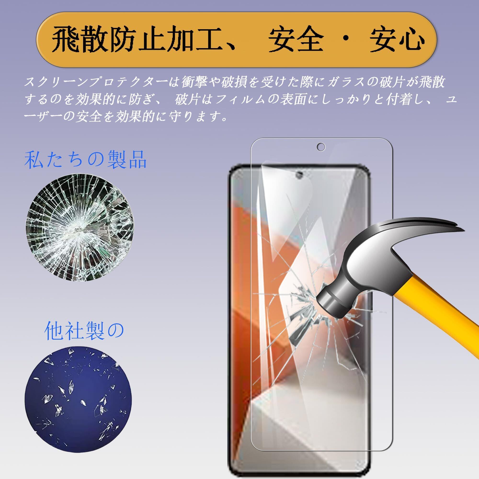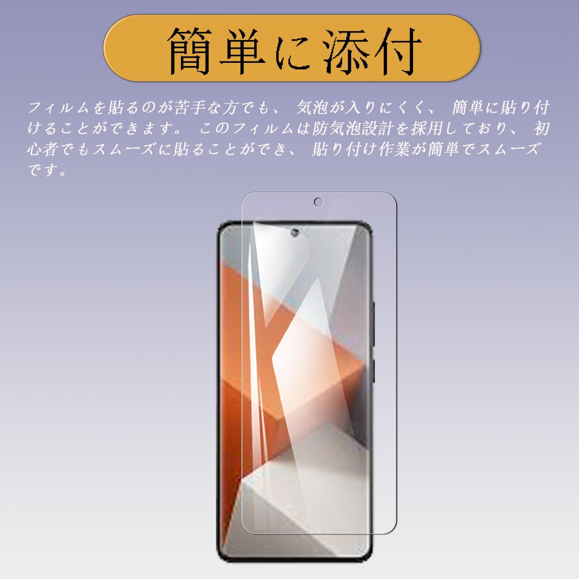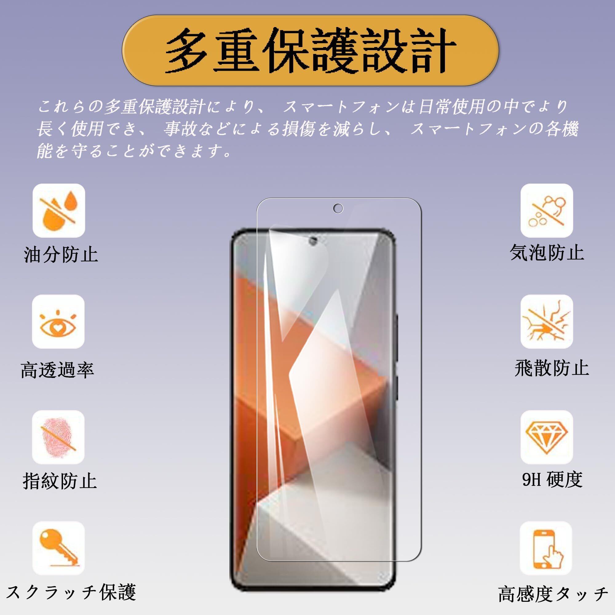 【超薄型強化ガラス】:この保護フィルムは、極薄設計を採用しており。スマートフォン本来の軽やかさを保ちながら、日常の衝撃からしっかりとディスプレイを守ります。装着していても違和感のない、スマートな仕上がりが特徴です