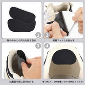 靴のかかと部分の汚れやほこりを布等で取り、スニーカーのかかと修復シールの裏面の離型紙を直接引き裂くだけで、破損した場所に貼って平らにし、操作が便利で時間が省けます。24h まで待ってからの使用をお勧めします。