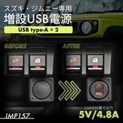 スズキ ジムニー&シエラ&ノマド(JB64/JB74/JC74)専用 の増設USB電源です。(USB Type-A/2口 5V/2.4A×2口)5ドア JIMNY NOMADE にも対応しております。
