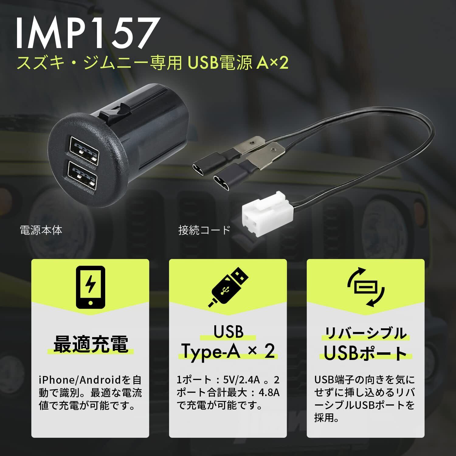 【2022最新】セイワ(SEIWA) 車種専用用品 スズキ ジムニー&シエラ&ノマド(JB64/JB74/JC74)専用 USB電源 A✕2 IMP157 最大出力 5V/2.4A×2口 リバーシブルポート 自動識別 純正同色LED 増設USB電源 スマホ&タブレット充電 5ドア JIMNY NOMADE にも対応 | allstore3