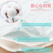 綿100%の柔らかい素材を使用しているため、赤ちゃんの敏感な肌にも安心です。ストレスなく着用できるので、長時間の使用でも快適さを保ちます。