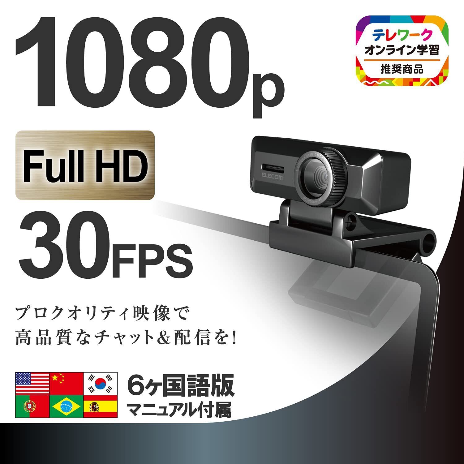 エレコム WEBカメラ UCAM-C750FBBK マイク内蔵 フルHD 1080p 30FPS 500万画素 高精細ガラスレンズ ケーブル長1.5m ブラック