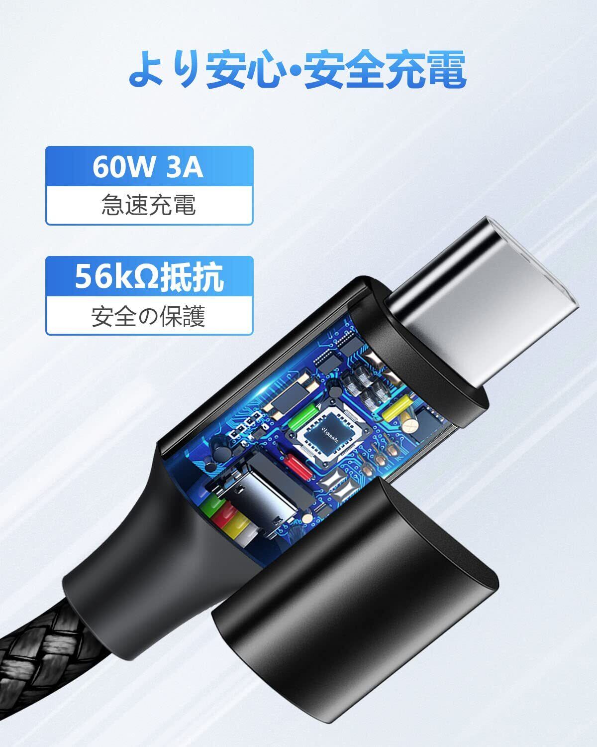 【最大60Wの高速充電】USB C ケーブルはUSB PD (Power Delivery)技術に対応し、最大60W(20V/3A)急速充電をサポートし、高効率と便利な充電を提供します。Quick Charge 3.0/2.0に対応し、最大480Mbpsのデータ転送をサポートし、1GBのファイルを数秒間で転送完了します。▲充電器と接続する機器がPD対応している場合に限ります。