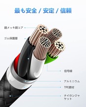 高品質な素材を使用しているため、抜き差しの頻度にも耐えられる高い耐久性を誇ります。また、ケーブルの内部構造にも配慮がされており、信号の損失が少なく、高速データ転送を実現しています。