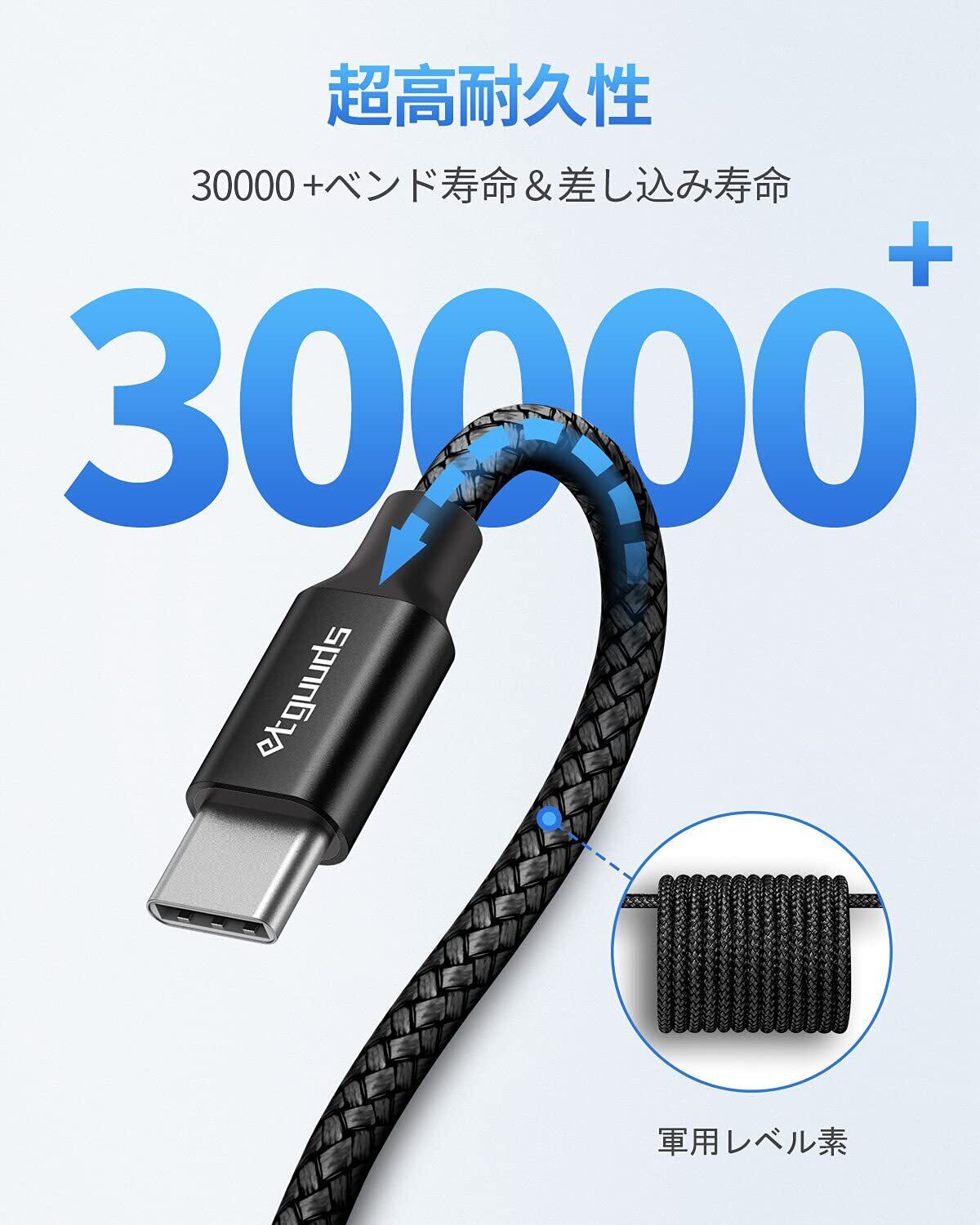 【高耐久&長持ち使用】柔らかく、曲げに強く、絡まりにくさを兼ね備えた高品質のナイロンで編み込まれたのCtoCコード、80Nの引っ張り強度試験と30,000回以上曲げ試験にも合格した。コネクタ部分にもアルミニウム合金製で繰り返しの抜き挿しに耐えることができます。