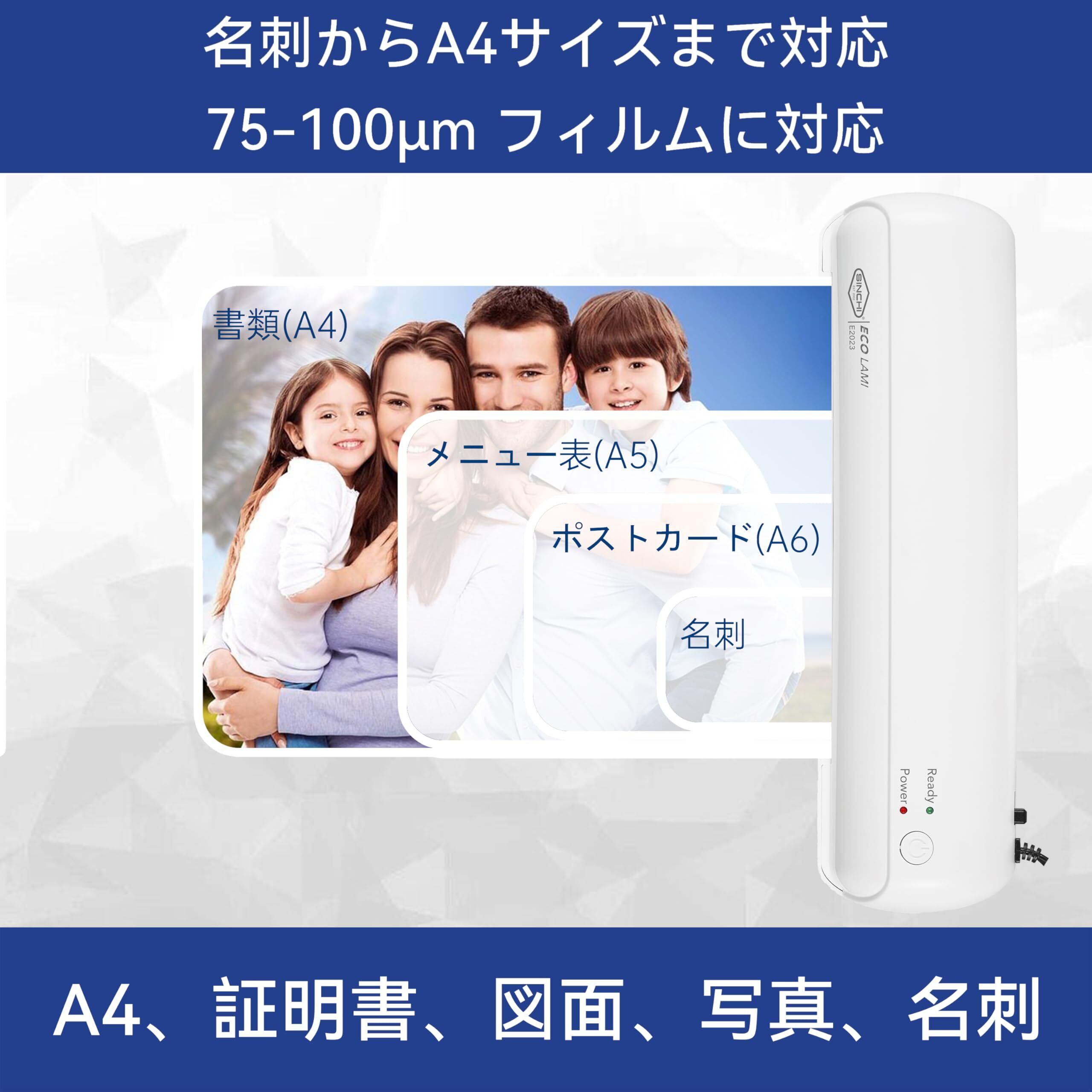 SINCHI 高性能ラミネーター A4対応 75-100μm(薄紙・厚紙対応)名刺・写真・はがき対応|初心者でも簡単操作|詰まり防止レバー搭載・ヒーターオートオフ機能・省スペース|家庭・オフィス・学校用