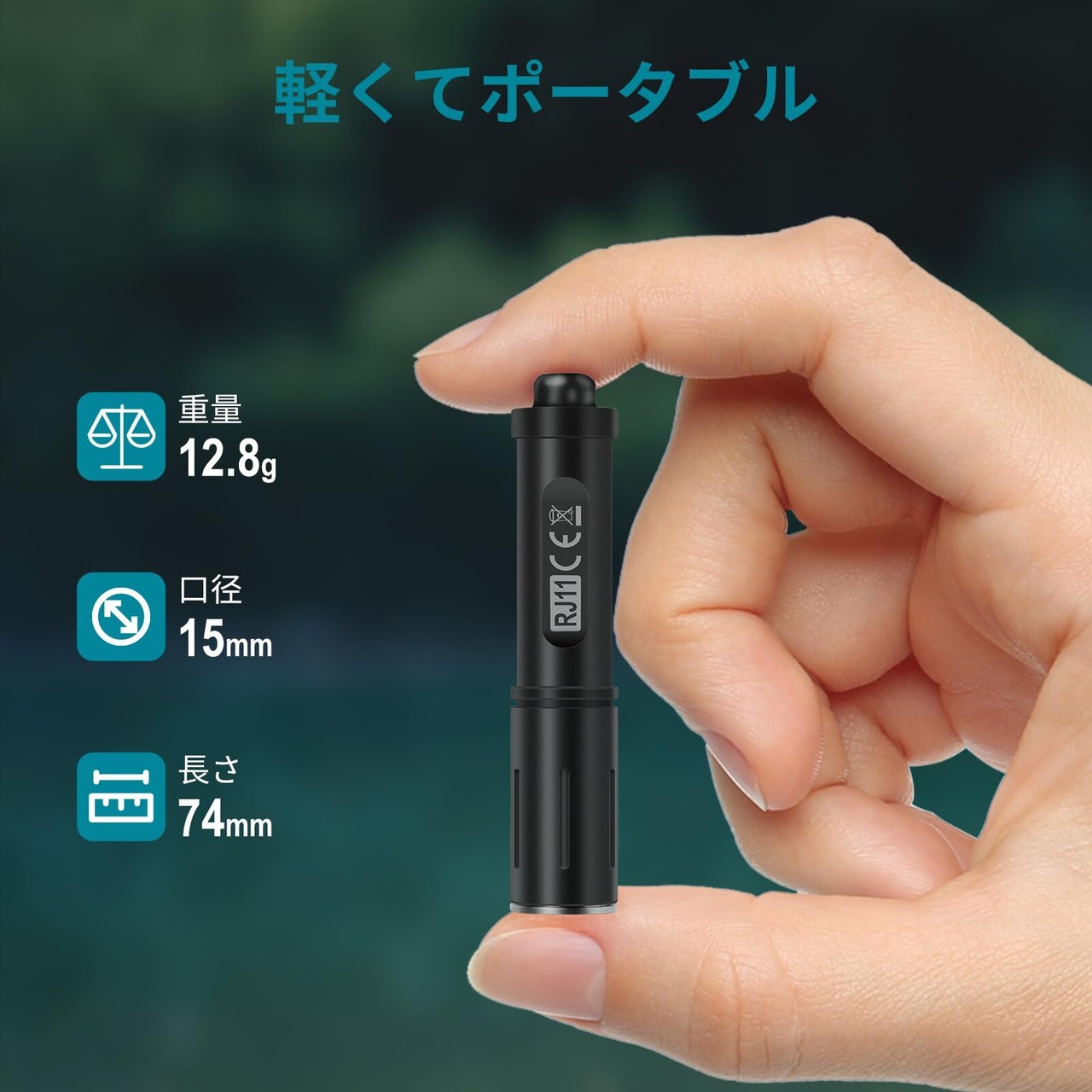 【携帯便利】このミニ懐中電灯の重さはわずか12.8 g(電池含まれない)で、サイズは74*15*15 MMで、片手で手に入れることができるサイズです。小型で軽量なので、ポケットに入れたりキーホルダーにぶら下げたりして簡単に持ち運べます。キャンプ、ハイキング、釣りなどのアウトドア活動に最適で、毎日携帯するのに最適です。