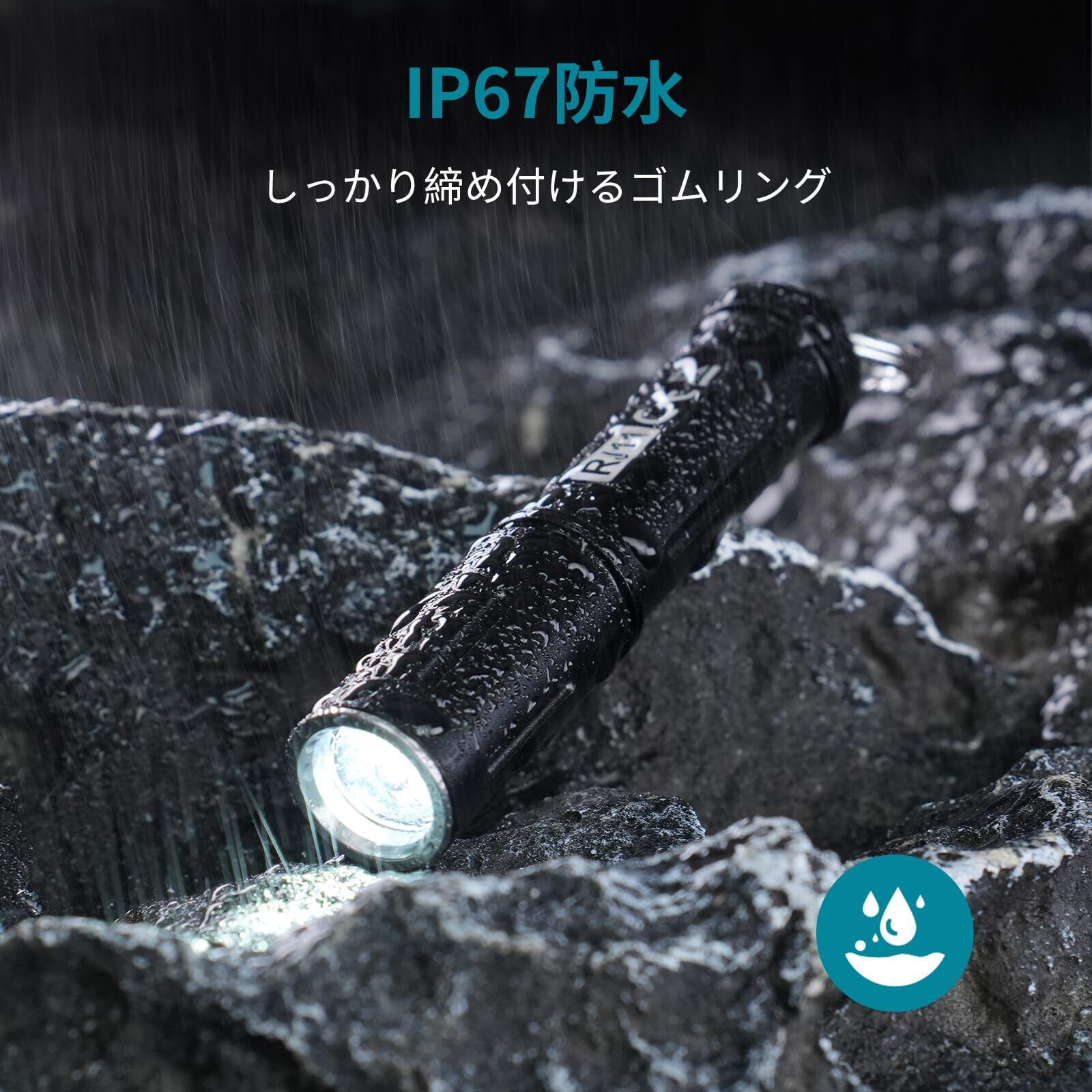 【防水仕様】ミニライトは高品質のアルミニウム合金で作られ、IP67防水等級で、日常生活の雨水などによる水滴の付着や飛沫程度なら、懐中電灯本体に悪影響なく耐えることができます。夜に自転車、散歩、キャンプ、アウトドア時に突然の雨が降りだしても心配はありません。