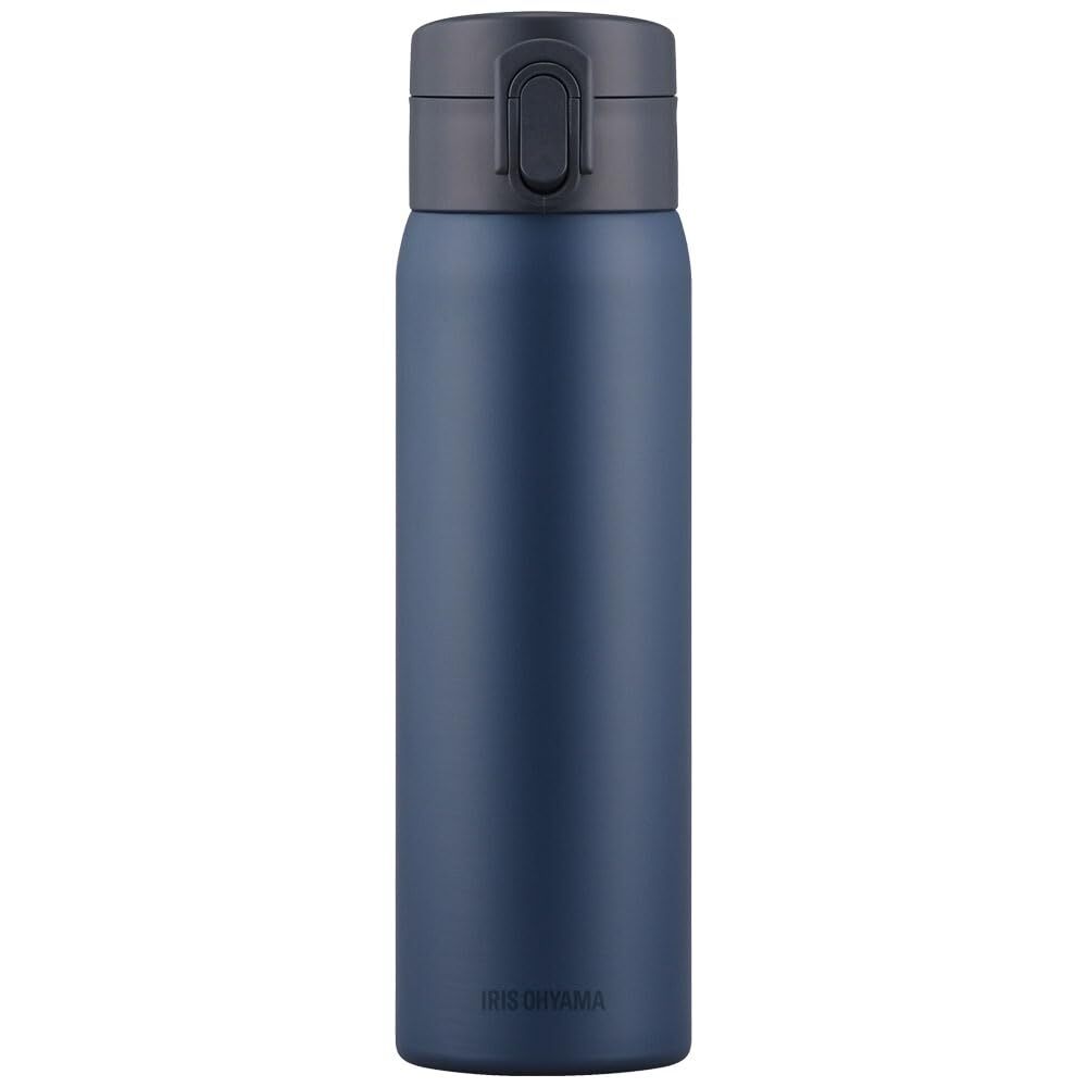 【在庫セール】アイリスオーヤマ 水筒 500ml 真空断熱6時間キープ 片手で開け飲みしやすいワンタッチ オフィスで使いやすい 直飲み 丸洗い出来てお手入れラクラク ステンレスマグボトル SKB-O500 ネイビー