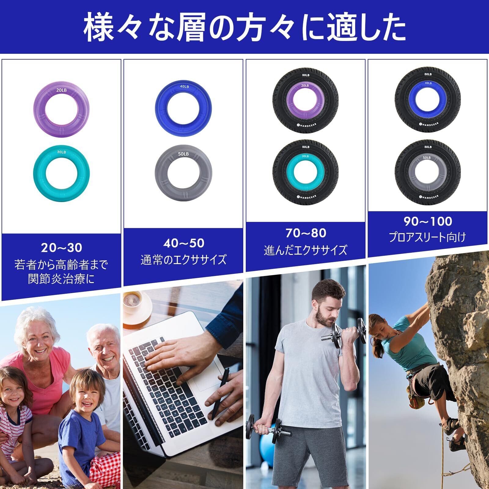 【全方位の手指トレーニング】: この握力トレーナーは、握力トレーニングや指のトレーニングに最適です。スマートな2-in-1スタッカブルデザインにより、異なる抵抗レベルでのトレーニングが可能です。楽器演奏やボルダリングのトレーニング、高齢者の認知症予防など、多岐にわたる用途で活用できます。フィンガーパワーを高め、筋トレグッズとしての効果を最大限に引き出します。
