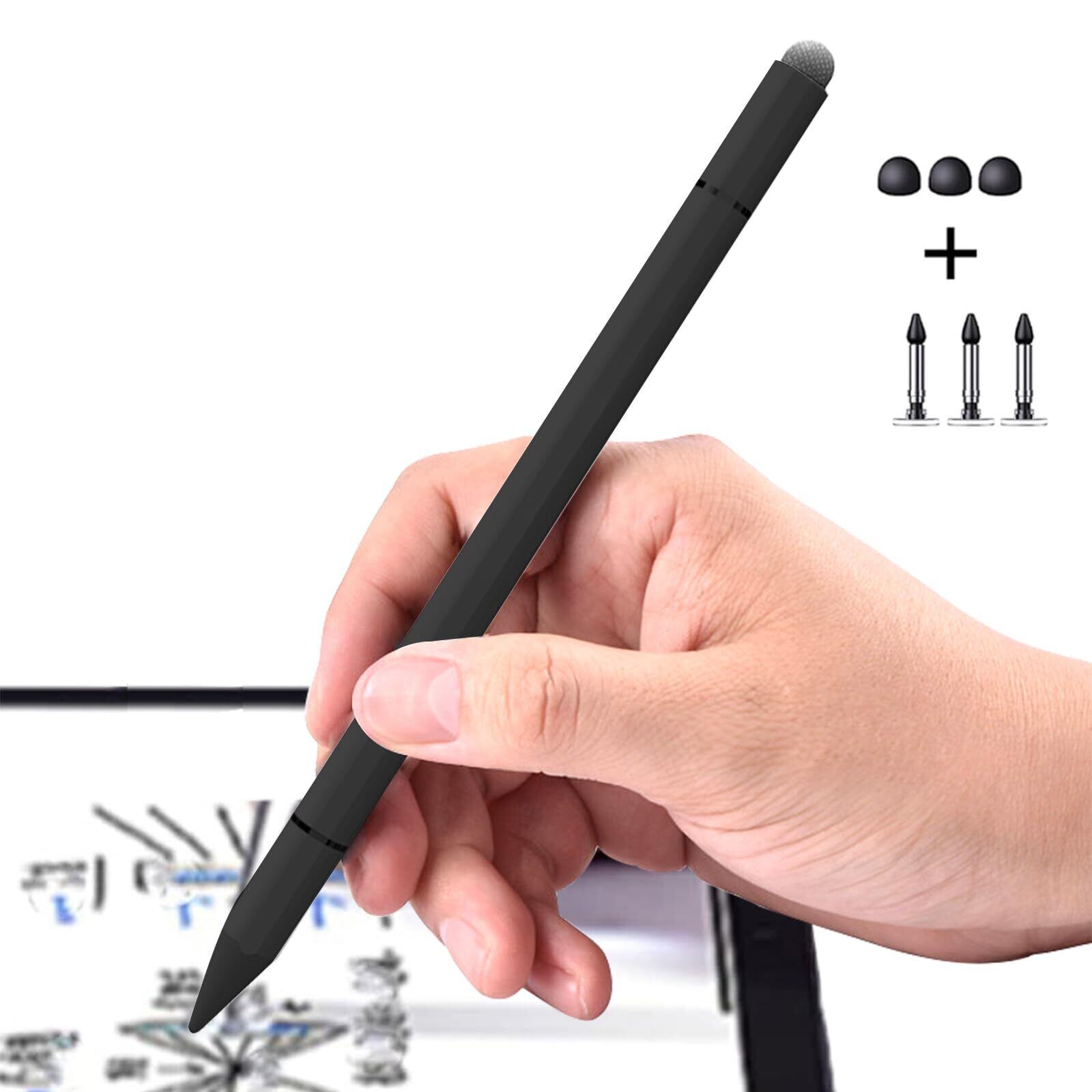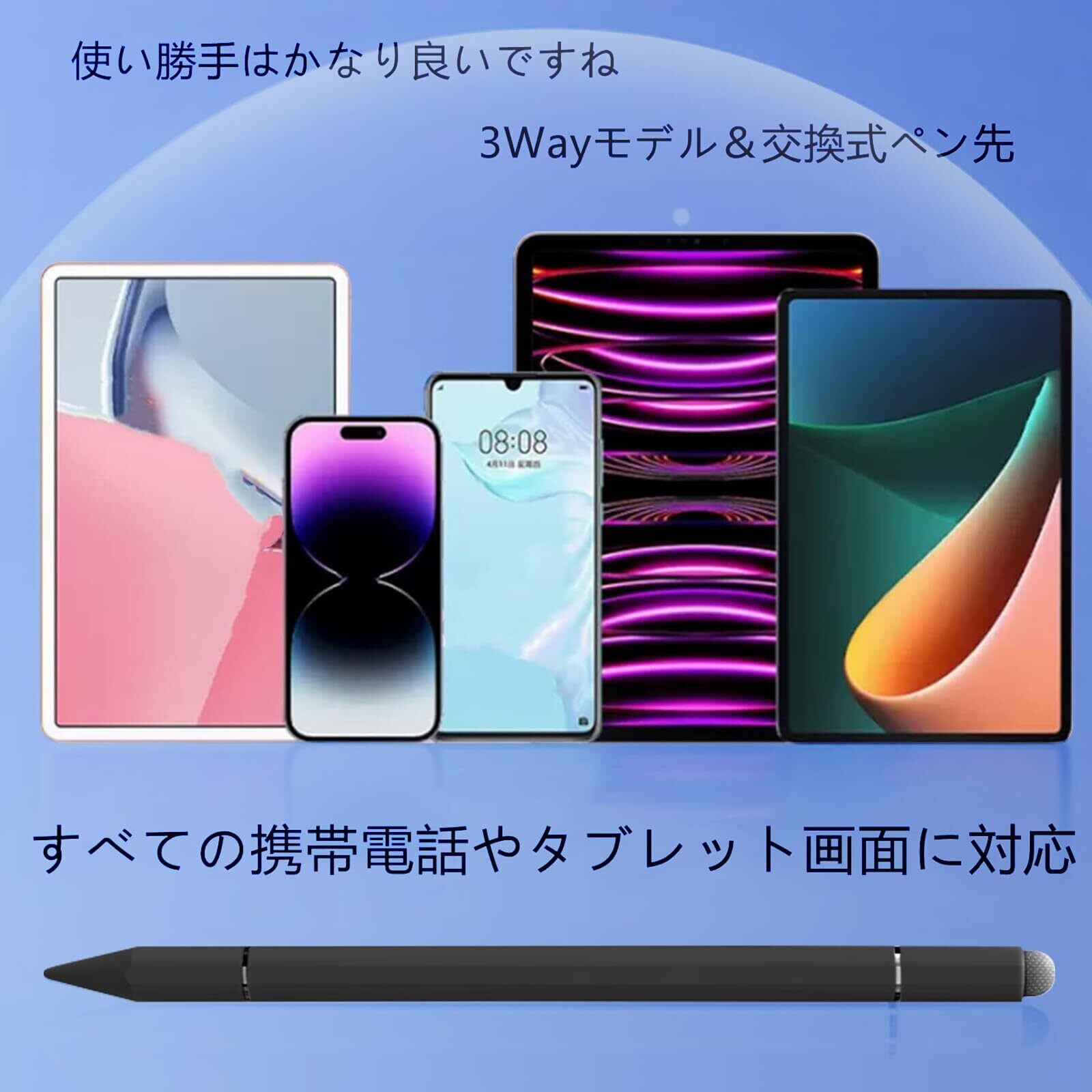 タッチペン 3in1 スタイラスペン 極細 充電不要 アイフォン ペン iPad iPhone Android タブレットPC/Mac スマホ 対応 たっちぺん イラスト ツムツム ゲーム スマートフォン ペン 磁気キャップ 高感度交換用ペン先付き(2ディスク+2導電繊維付属) (黒色)