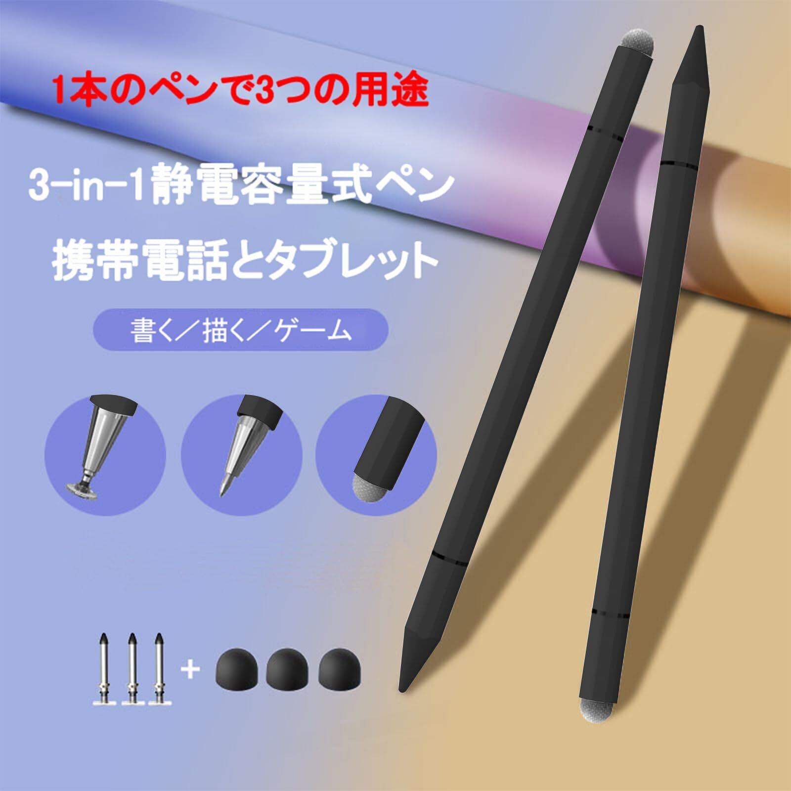 【新春セール】タッチペン 3in1 スタイラスペン 極細 充電不要 アイフォン ペン iPad iPhone Android タブレットPC/Mac スマホ 対応 たっちぺん イラスト ツムツム ゲーム スマートフォン ペン 磁気キャップ 高感度交換用ペン先付き(2ディスク+2導電繊維付属) (黒色) | allstore3