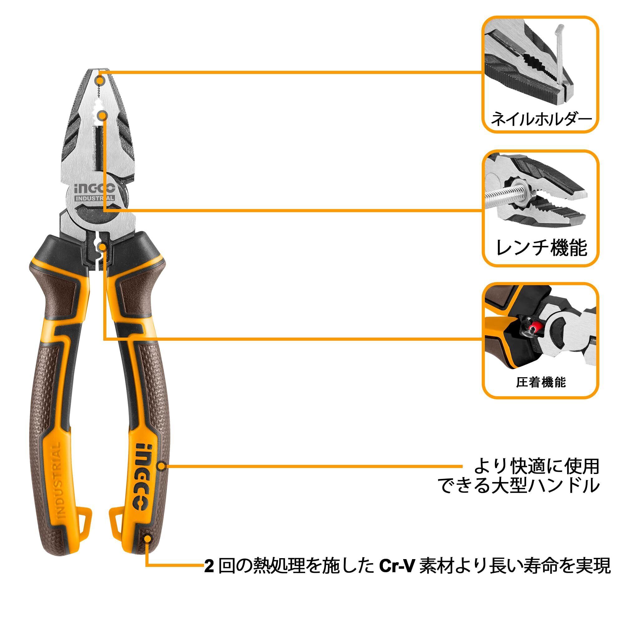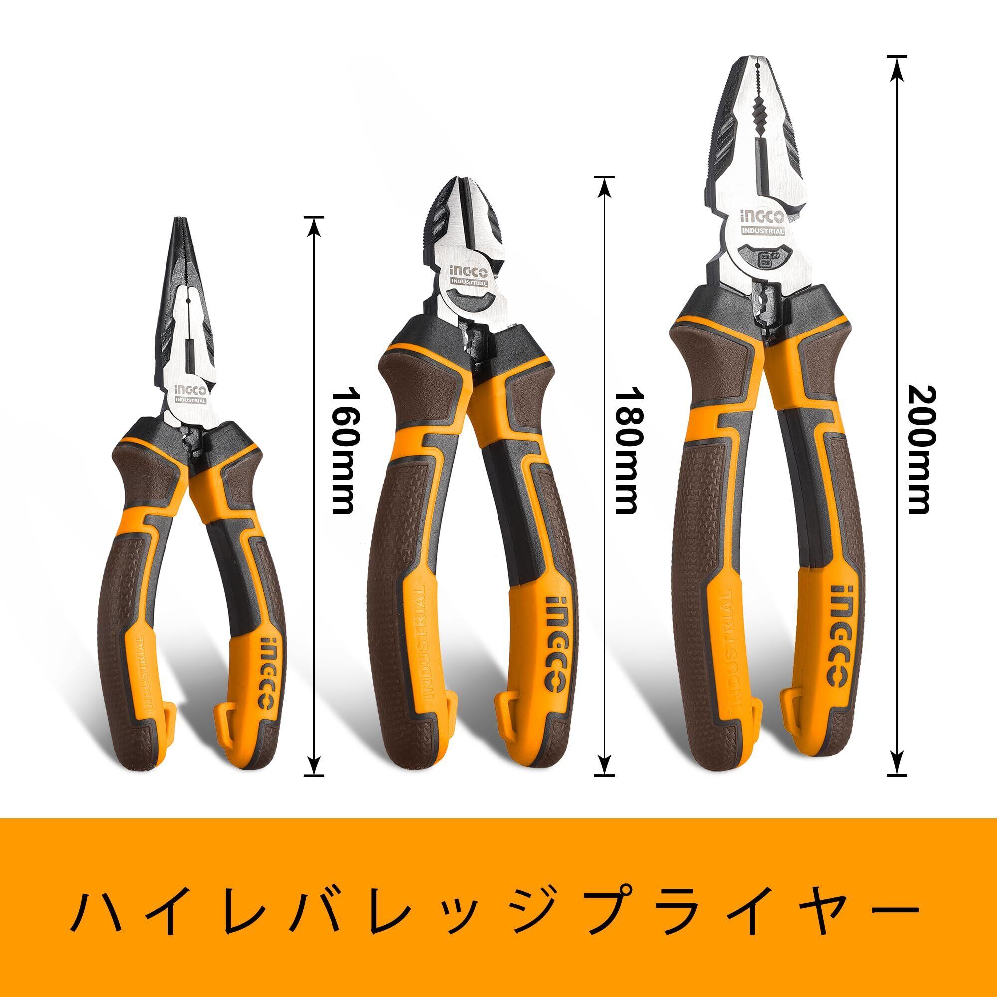 INGCO ペンチセット 3点組 ハイレバレッジ プライヤー 200mmペンチ 180mmニッパー 160mmラジオペンチ HKHLPS2831