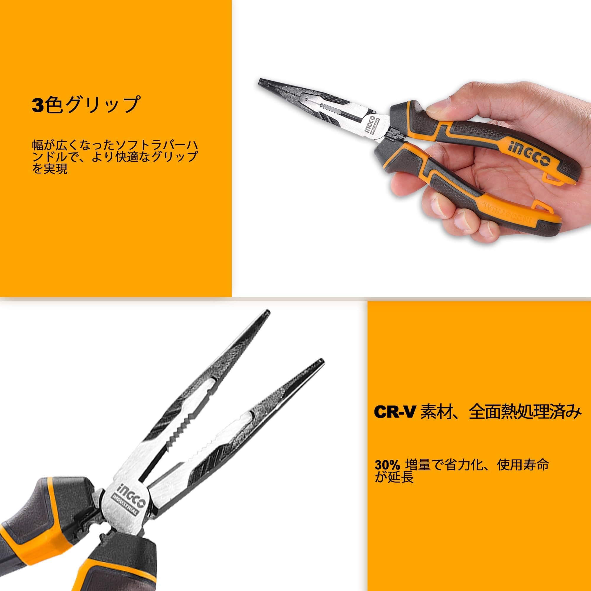 【商品詳細】8"/200mmペンチ、7"/180mmニッパー、6"/160mmラジオペンチ。CR-V鋼の素材で、全体的な熱処理、より高い硬度、長寿命を備えています