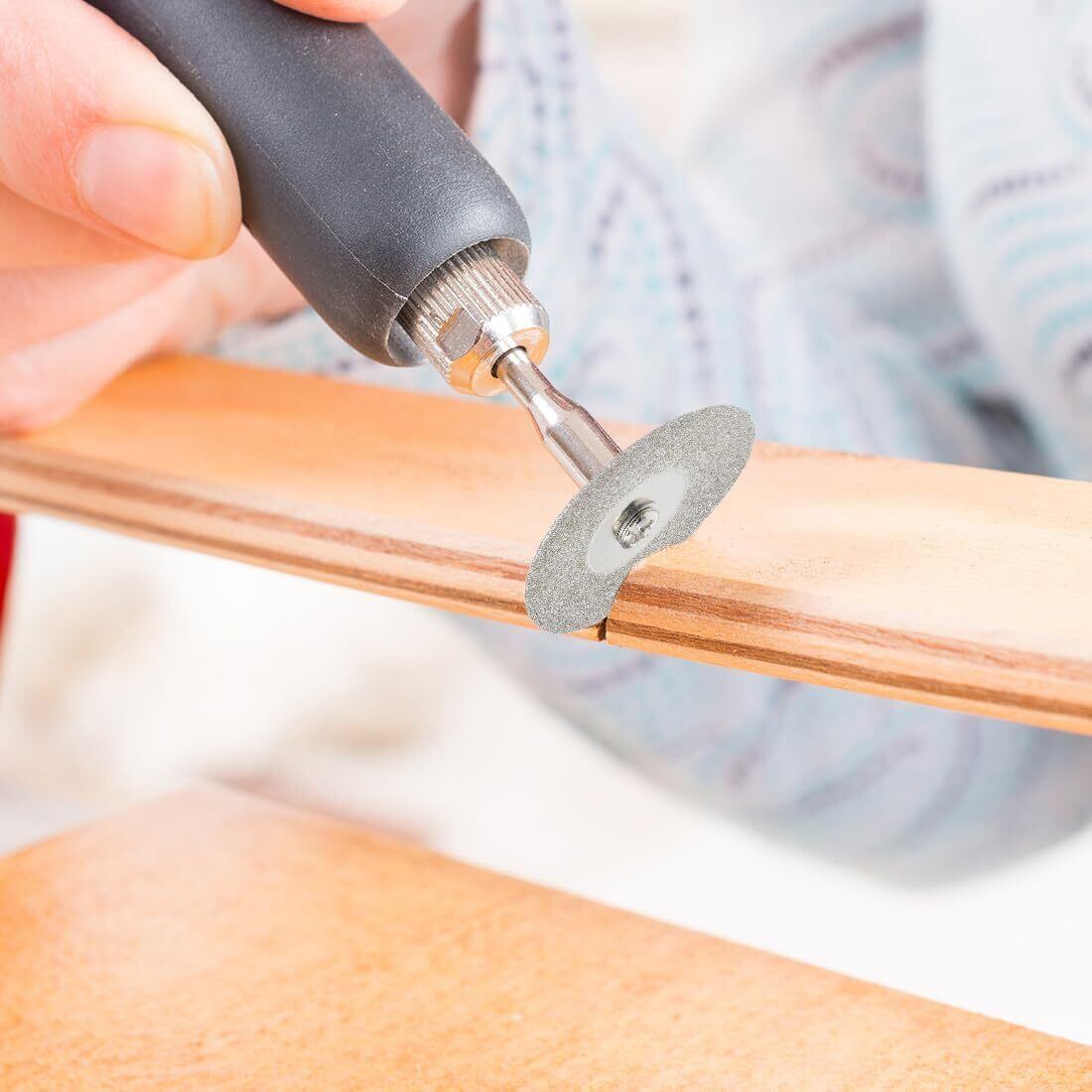 10枚入りのディスクと3mm軸が2本付属しているため、ミニルーターやリューターとの相性も抜群。石材、陶器、ガラスなど、多様な素材で使用可能なこのカッターは、DIYやプロの現場でのニーズを満たすアイテムです。