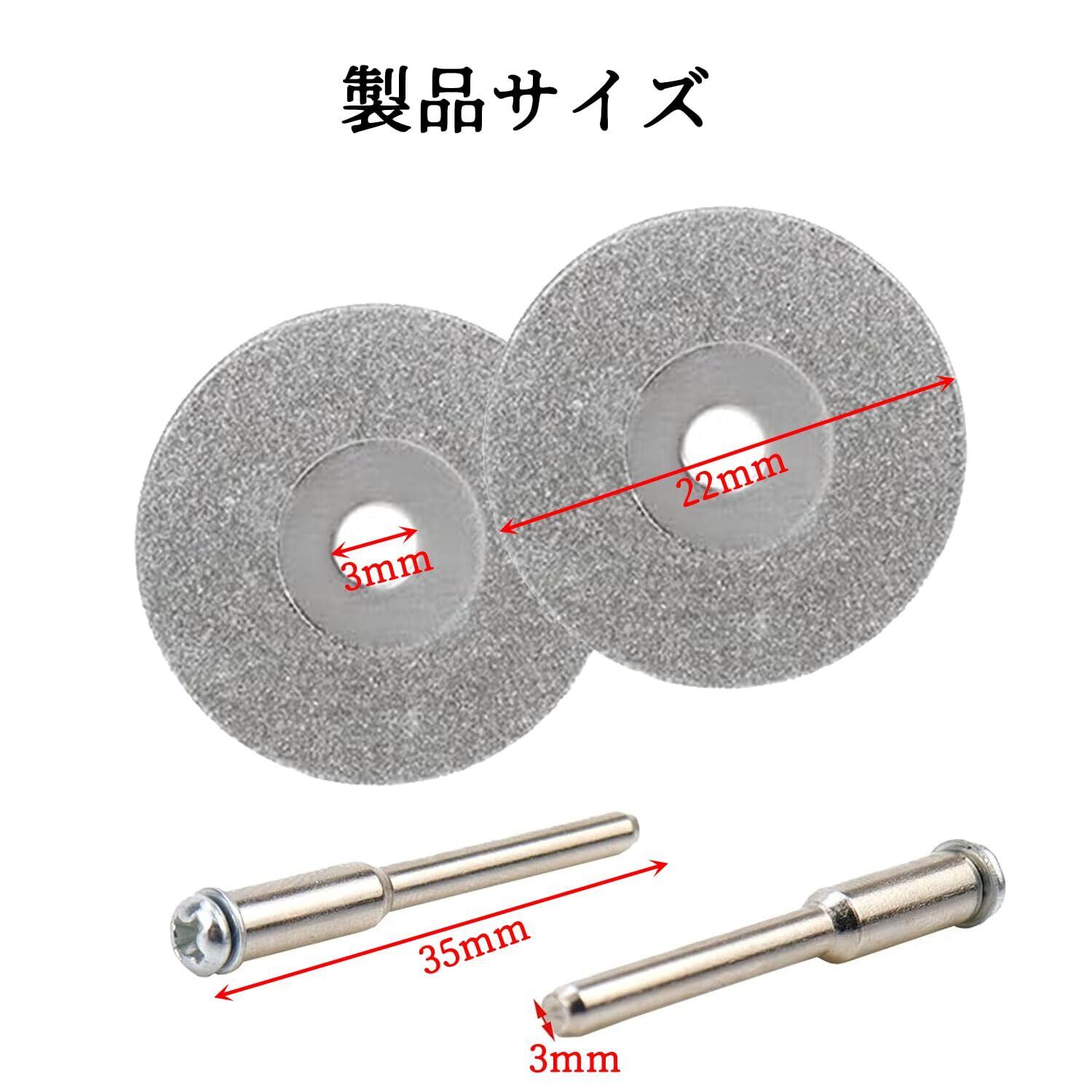 丸穴ミニダイヤモンドカッター 直径22mm 10枚入り 3mm軸2本付 ダイヤモンドカッティングディスク ダイヤモンドビットブレードセット ミニルーター ルーター リューター用 シルバー ダイヤモンドカッティングディスク