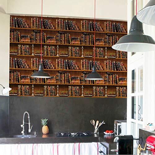 【まるで本物の本棚柄】:おしゃれな本棚柄は高級感があり、お部屋を図書館のように飾りましょう~ご安心にお使え頂けるための防炎加工が施された。キッチンのリフォームにも適する。お部屋の雰囲気をガラッと変えられます!模様替え簡単!はがせるシールタイプなので賃貸にも安心です。