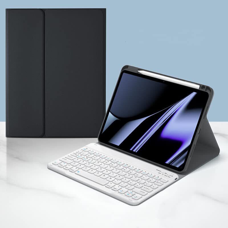 【最新モデル】iPad9 iPad8 iPad7 iPad Air3 iPadPro10.5 キーボード ケース Apple Pencil 上部収納 球状くぼみ 入力しやすい キーボード付き カバー 分離式 マグネット Bluetooth キーボード カラーキーボード, 黒+白