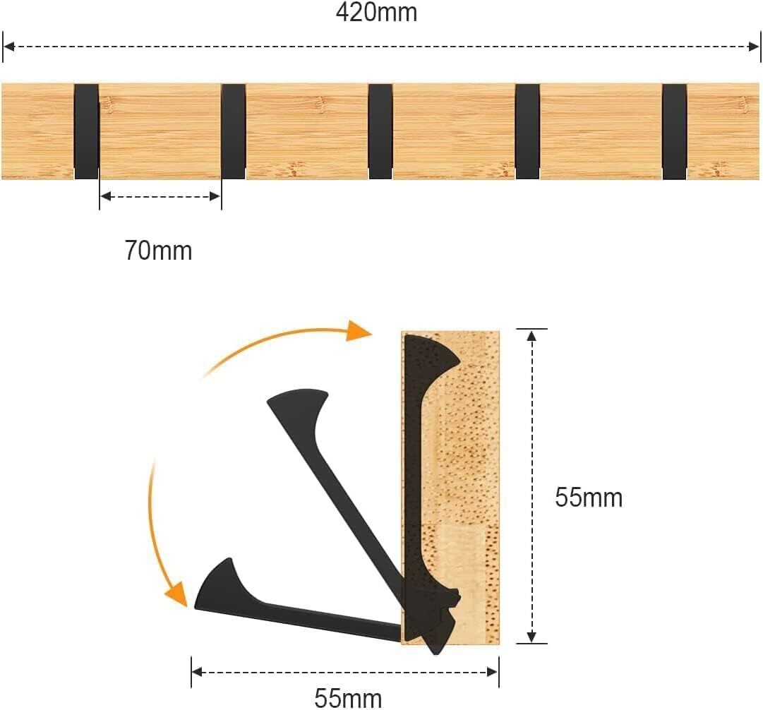 【数量限定】ウォールハンガー 壁取り付け式コートラック 5連フック 壁掛けフック 収納家具 物干しハンガー 帽子掛け・洋服掛け・コート掛け 木製 2個セット(黒フック折り畳み型) | allstore3