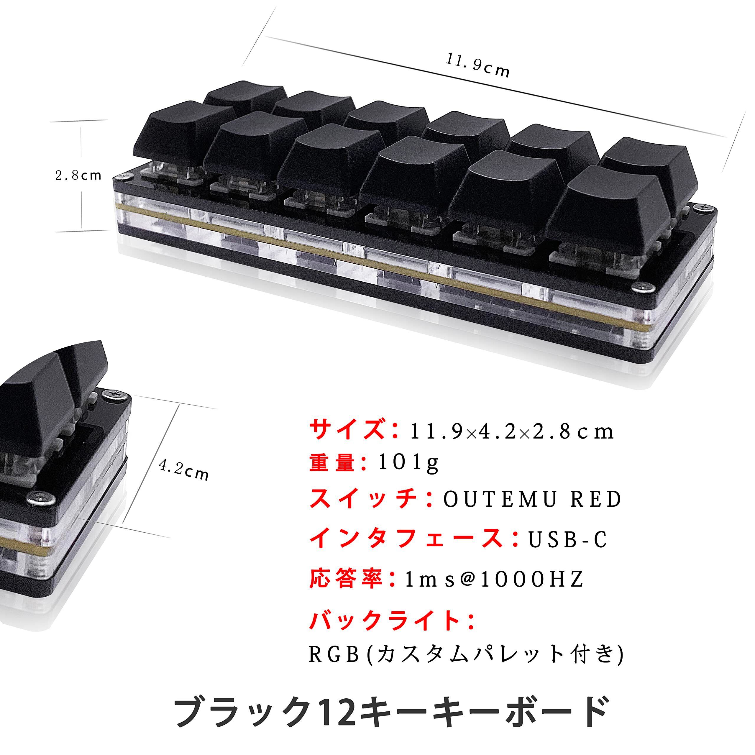 【新着商品】12キーメカニカルゲーミングキーボード 片手キーパッド USB-C 有線 OSU キーパッド プログラム可能 ホットスワップ可能キーボード