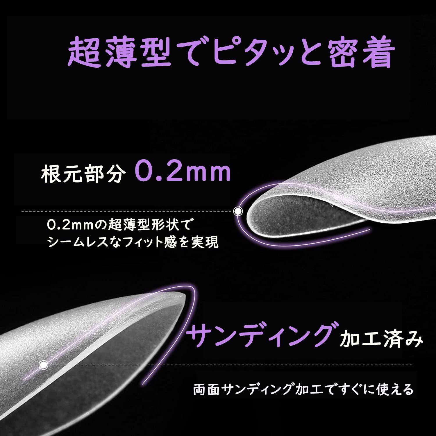 極薄型ネイルチップ 後端部0.2mmの超薄で自然なフィット感を実現しています。超薄タイプで爪にぴったり密着するため、浮いたように見えず自然な仕上がり。自爪となじみのよいです。透明タイプなので付け爪と練習用のどちらにも使えます。収納に便利なケースに入って届くので、配送中の割れ・欠けも防げるでしょう。